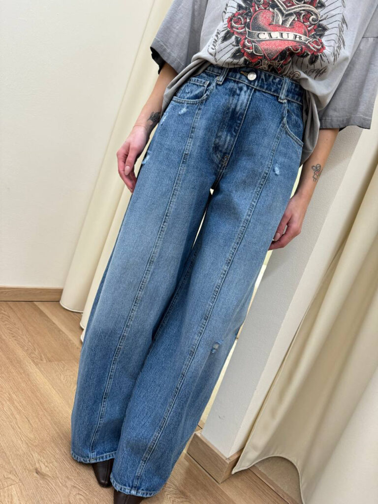 Jeans “Gerbera” palazzo blu sfumato Kontatto