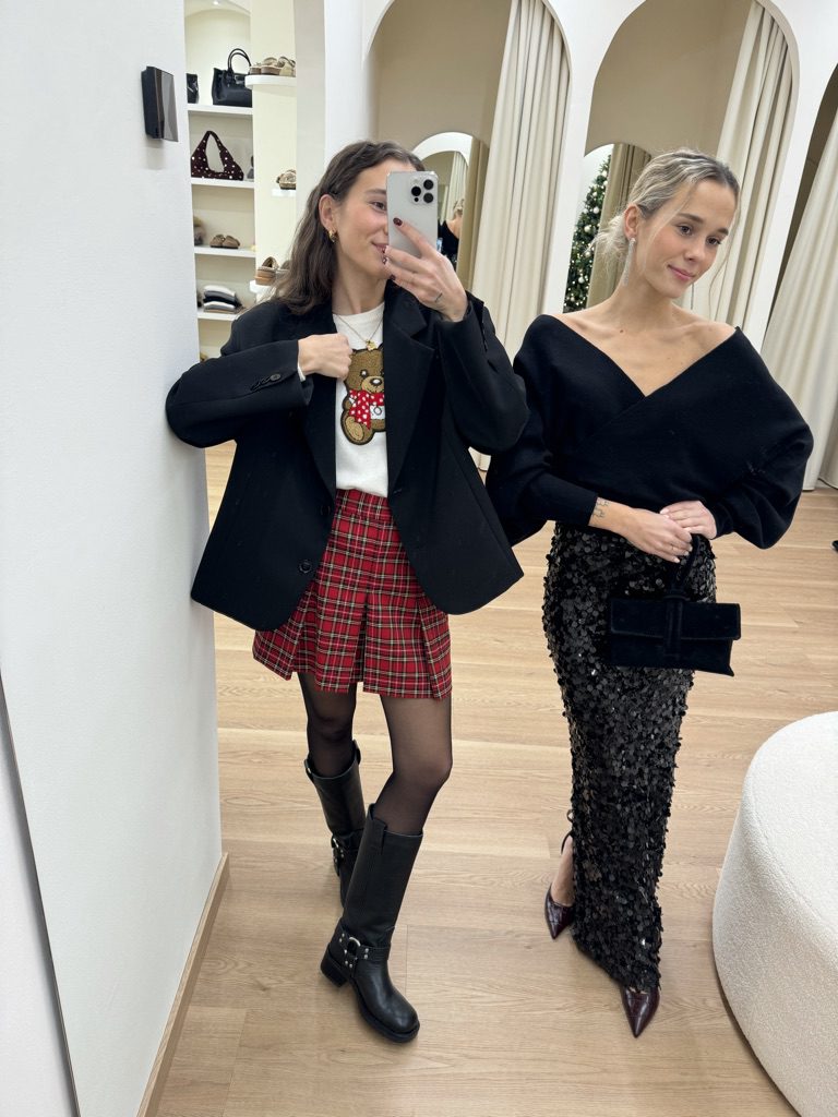 La Vigilia richiede un tocco in più. Spazio ai maglioni raffinati con brillantini, ai capi come minigonne o camicie in tartan o check , intramontabile simbolo delle feste, e alle tonalità iconiche del rosso e del bianco. Linee femminili e dettagli luminosi rendono ogni outfit speciale, perfetto per una cena elegante o un aperitivo festivo.