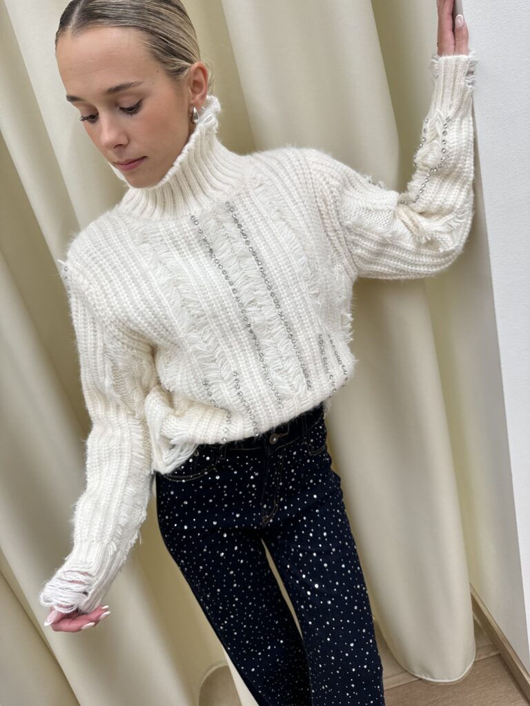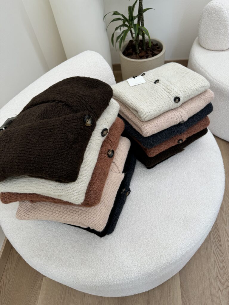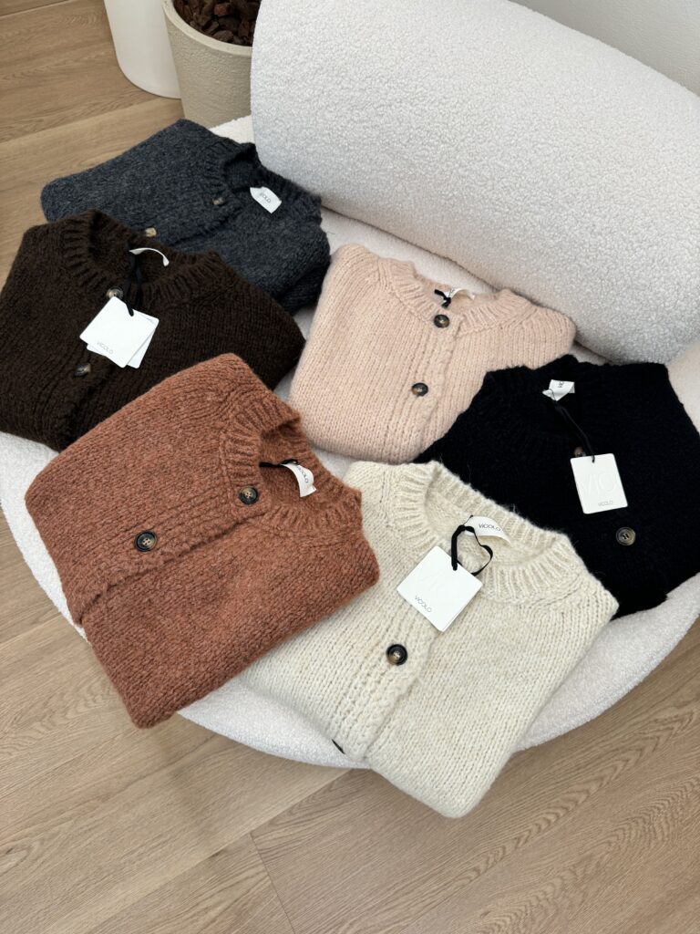 Dettagli ricercati come bottoni gioiello, colletti ampi, maniche balloon e bordi a contrasto rendono ogni capo unico e femminile. La maglieria di questa stagione non è solo un capo caldo, ma un vero e proprio elemento di stile, capace di trasformare ogni outfit con semplicità.