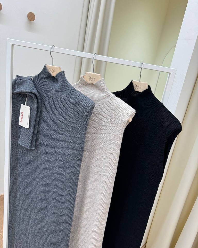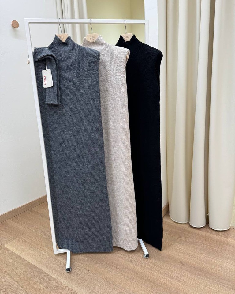 Abito in maglia smanicato collo alto spalline e manicotti grigio Kontatto