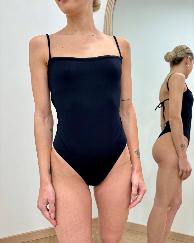 Bikini Elodie nero, modello intero con scollo dritto davanti, spalline regolabili e scollo profondo su dietro, sgambatura a brasiliana. Vestibilità piccola, se si oscilla tra due taglie consigliamo la taglia sopra.
