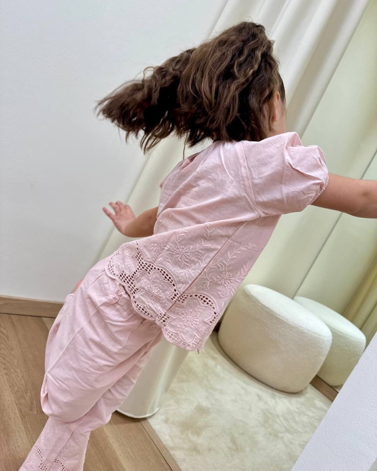 Vestito pizzo san gallo rosa pastello Lil’Atelier