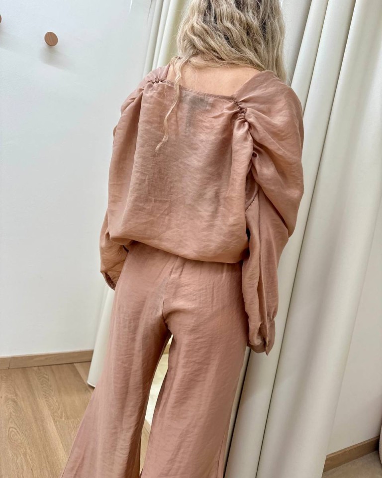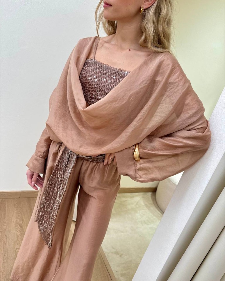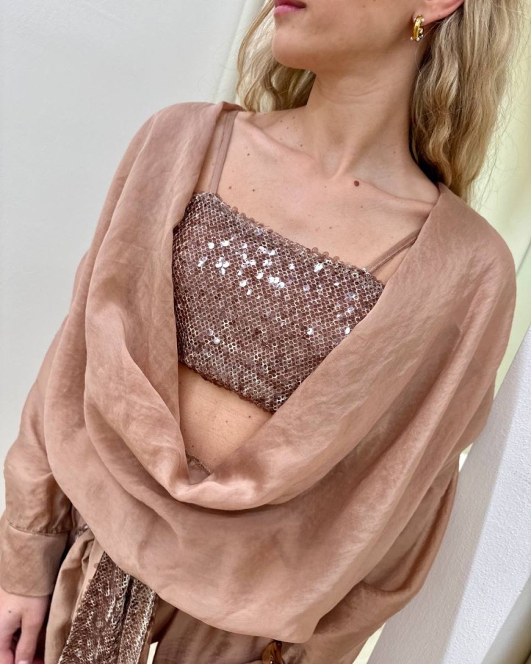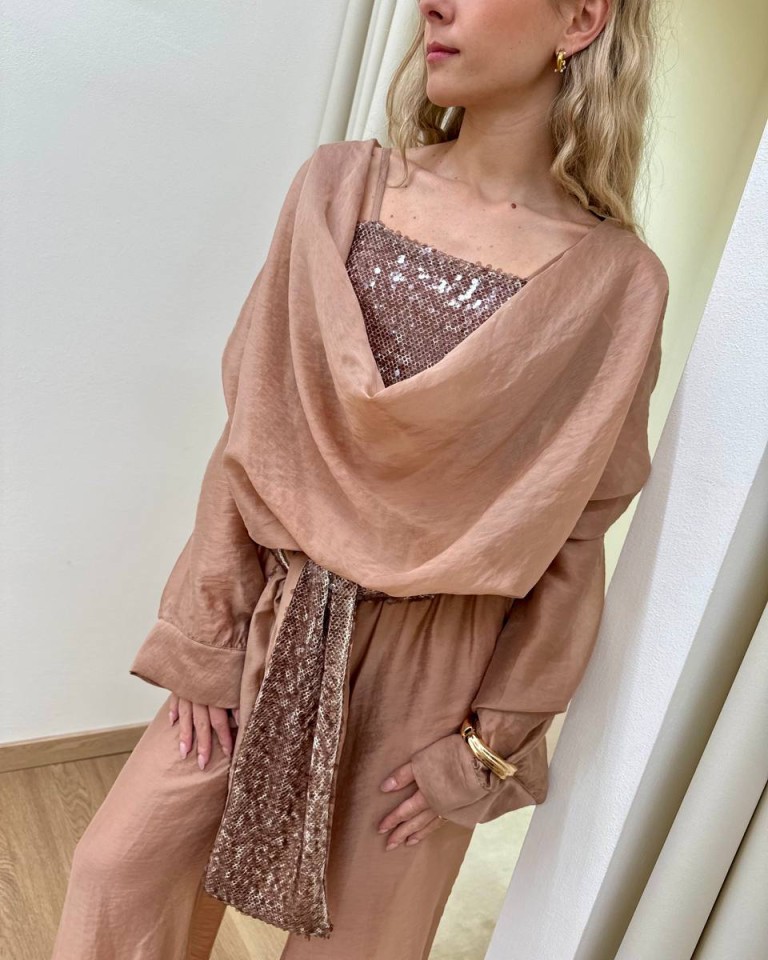 Blusa scollo gronda e top paillettes nocciola HaveOne