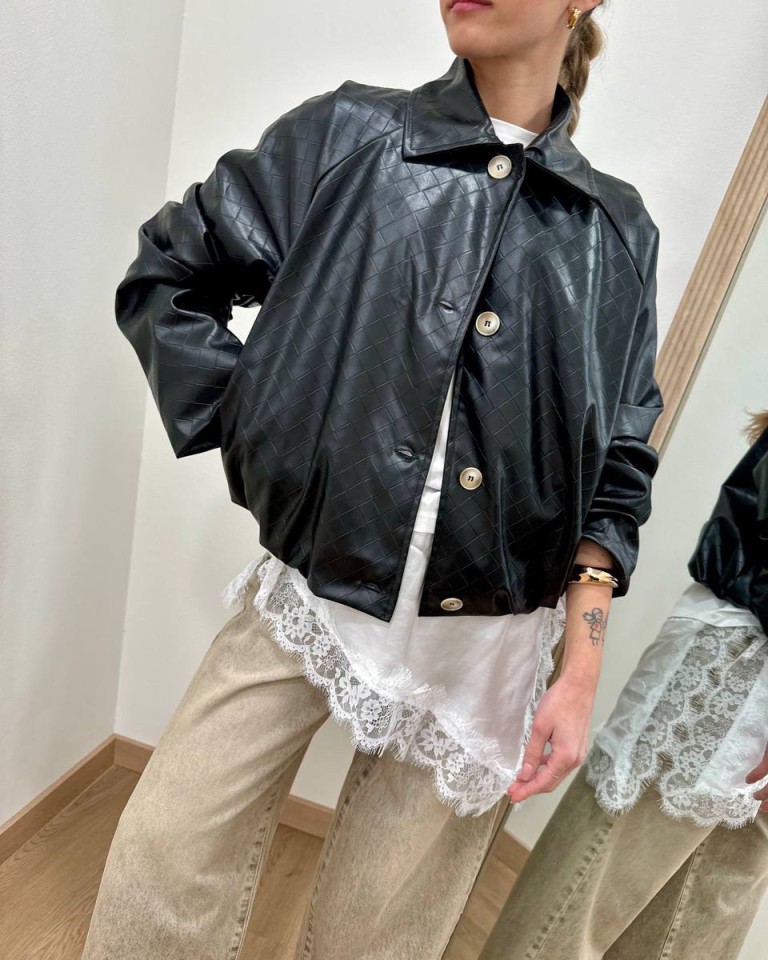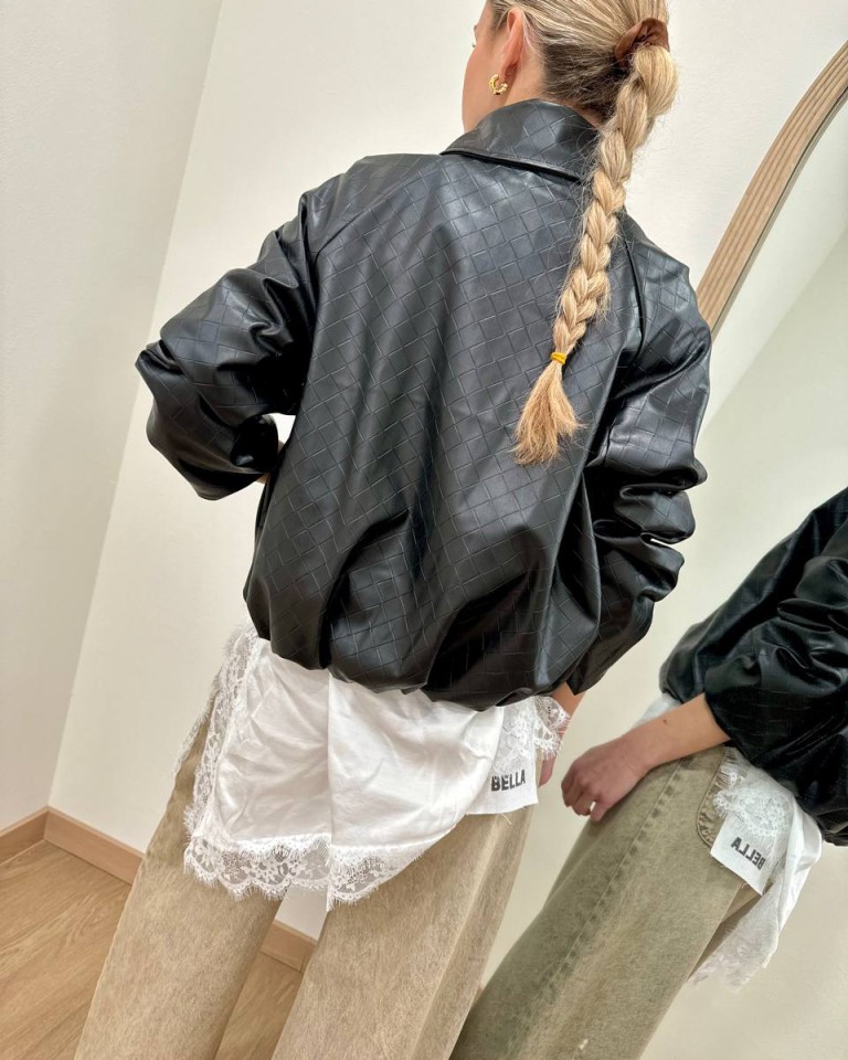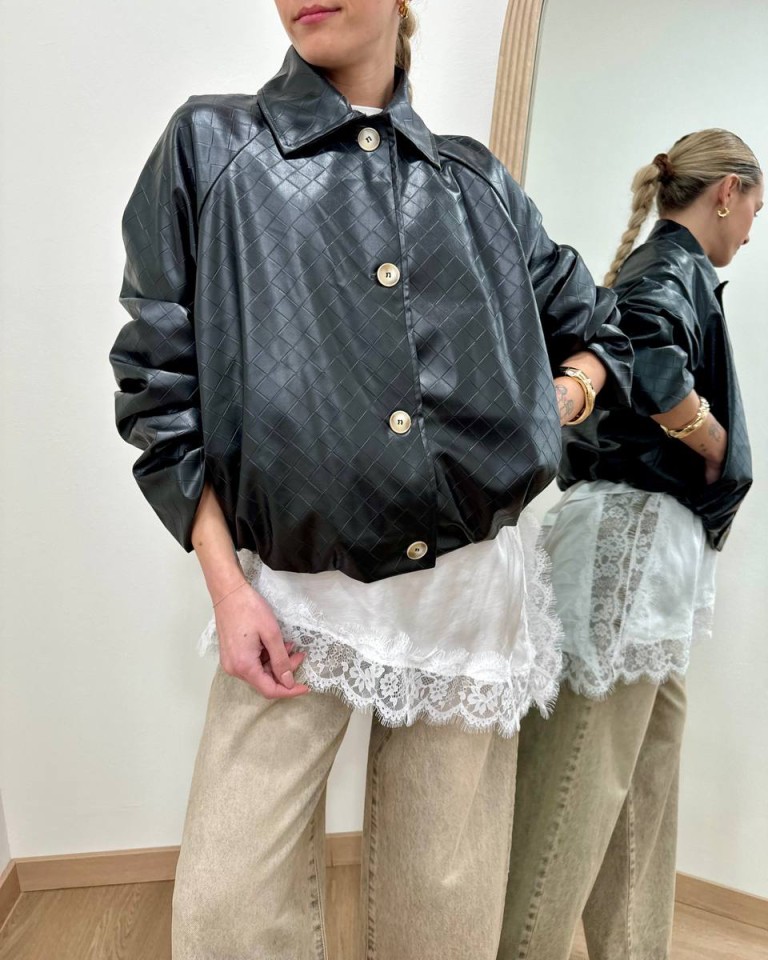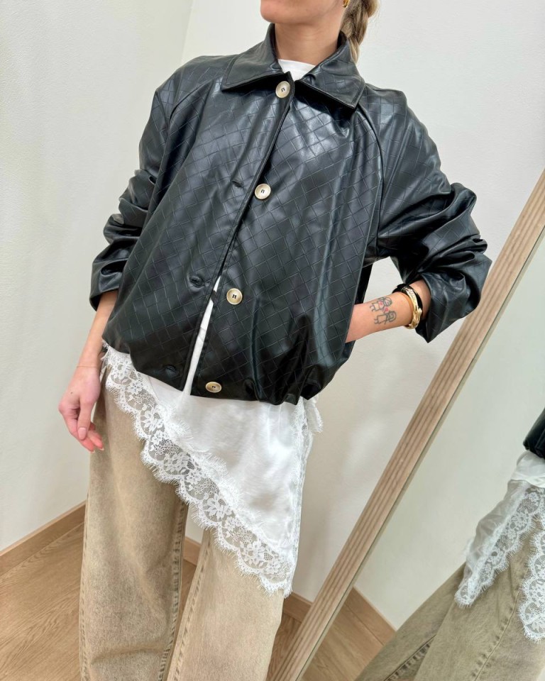 Bomber ecopelle nero intreccio Susy Mix