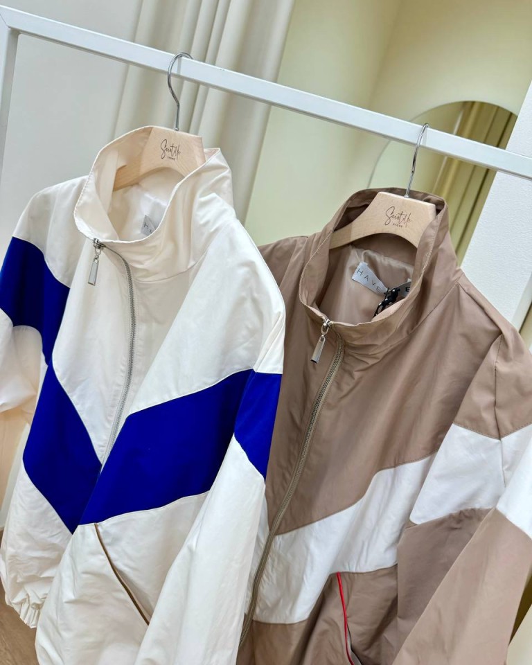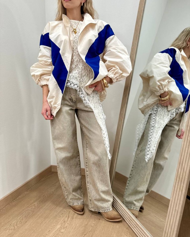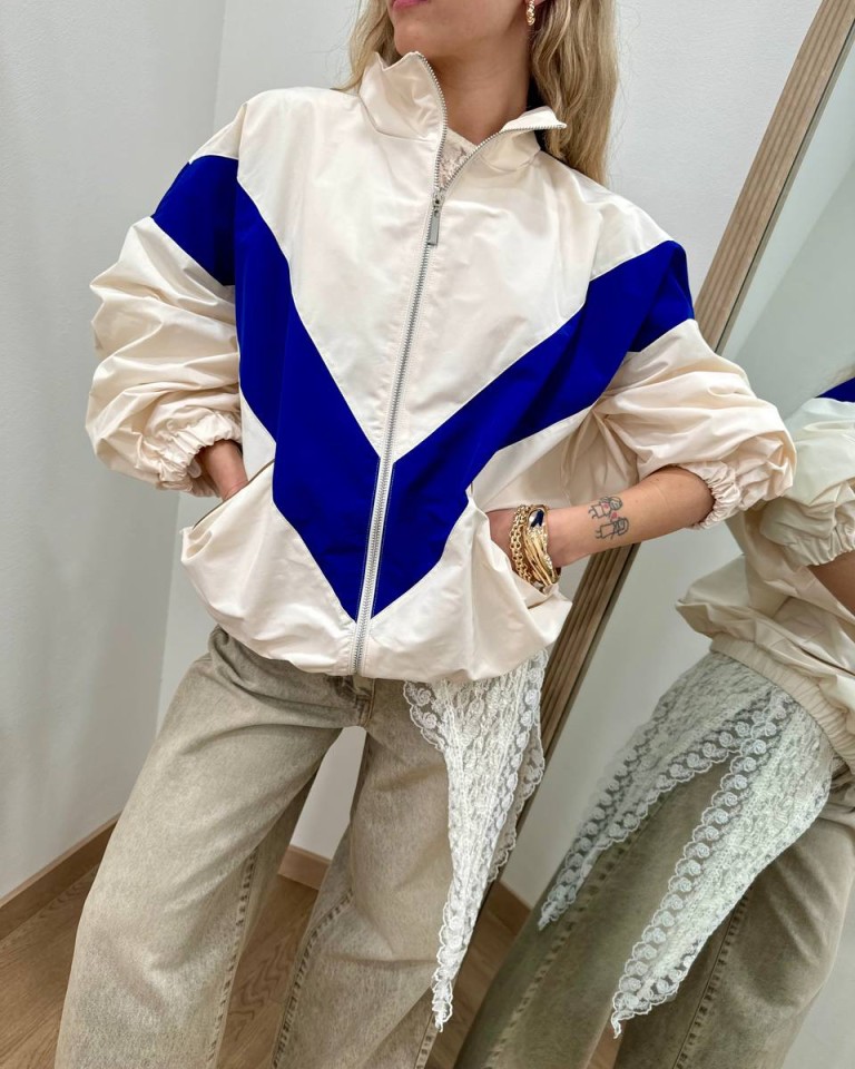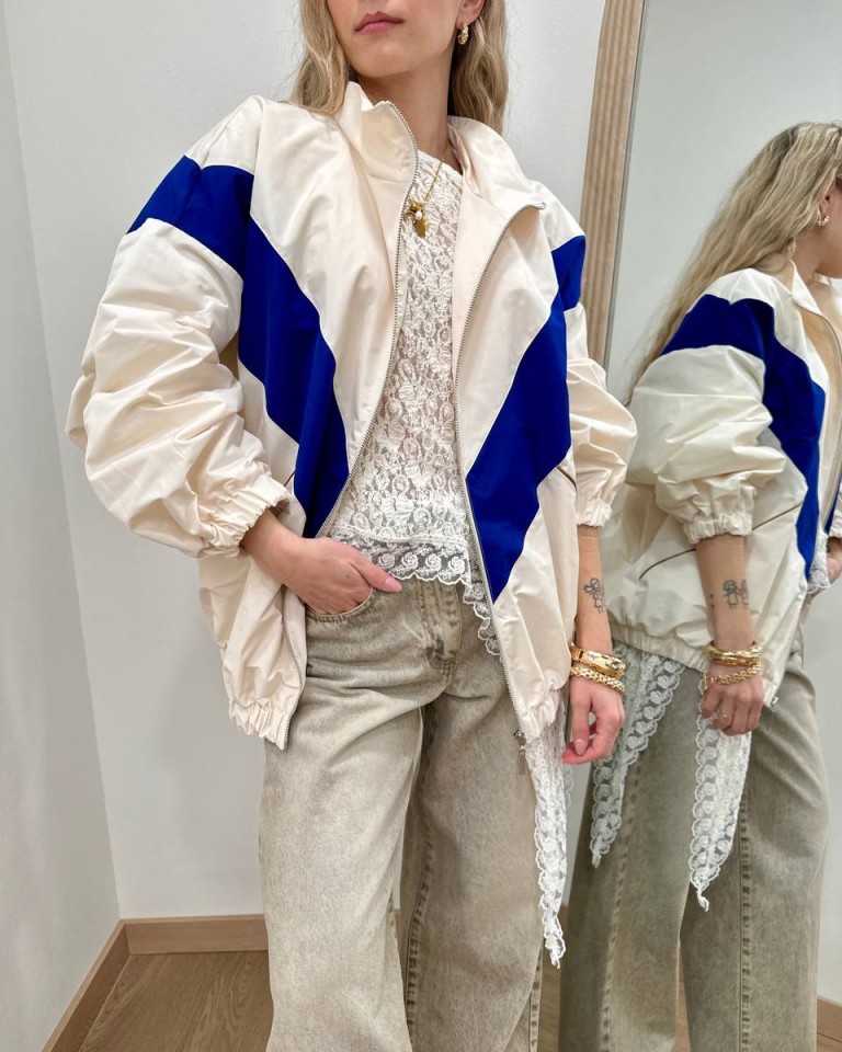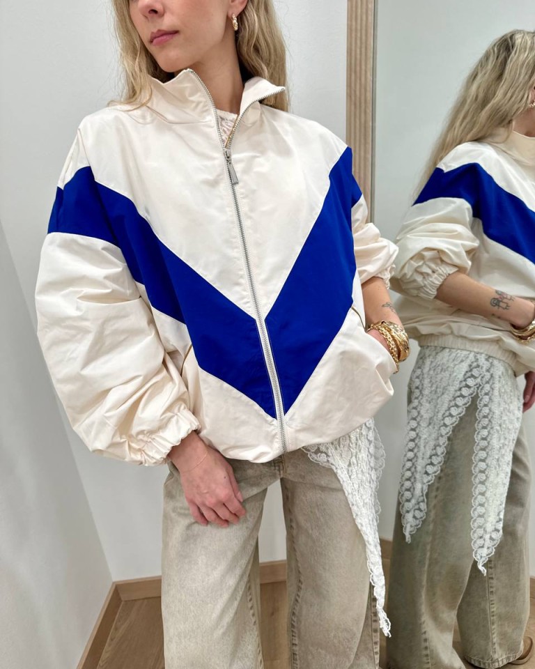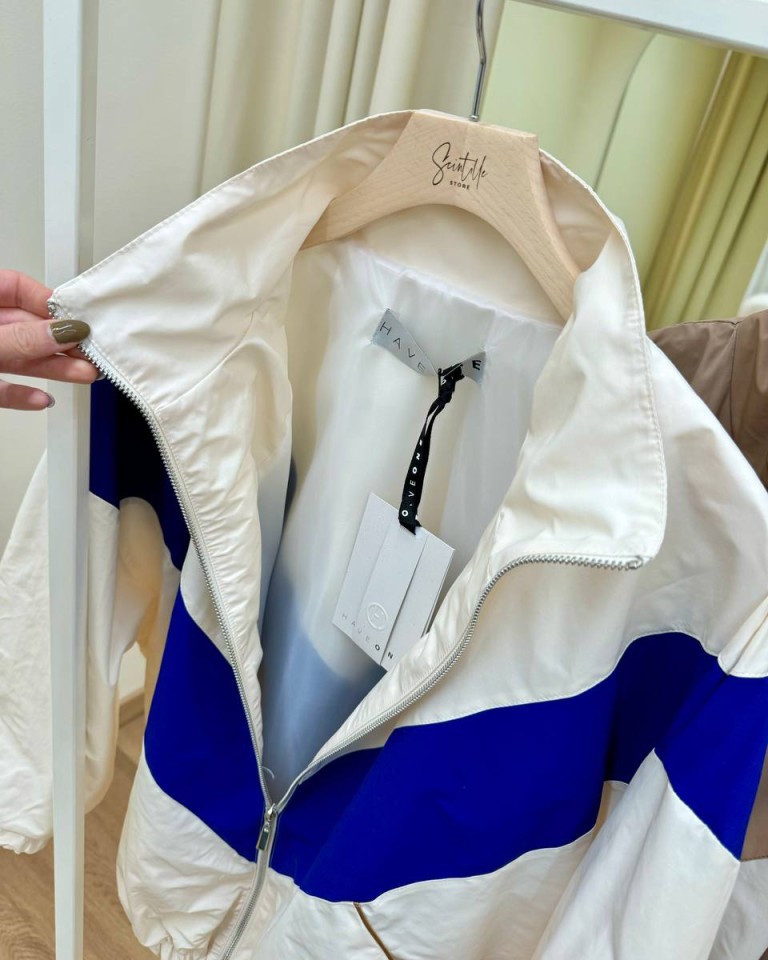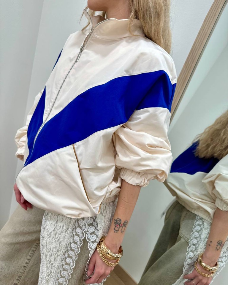 Bomber tessuto tecnico panna e blu HaveOne