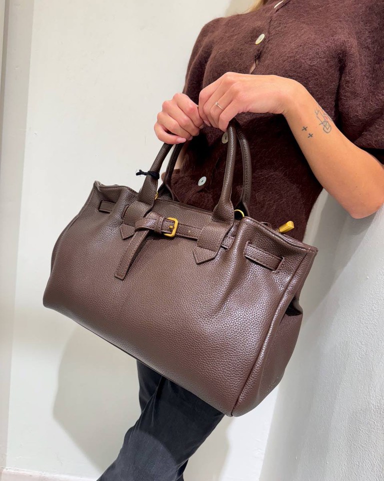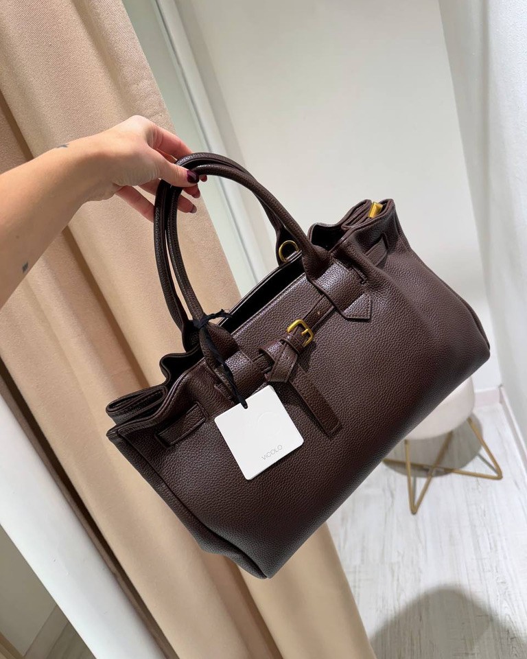 Borsa Journey Bag Small in ecopelle martellata moro. Manici rigidi in similpelle. Chiusura con cerniera e dettaglio cintura passante con fibbia con chiusura regolabile. Tracolla in similpelle con fibbia regolabile con gancio in metallo rimovibile. Tasca interna con cerniera e taschina piatta. Logo vicolo laterale.