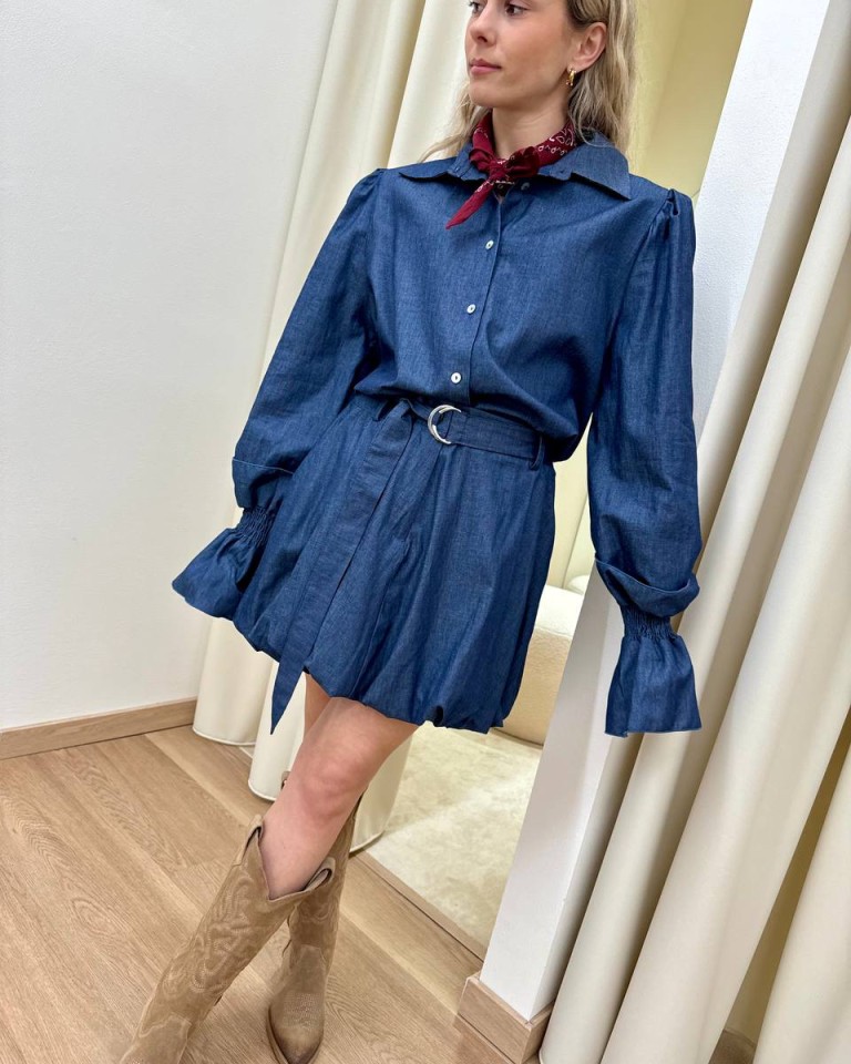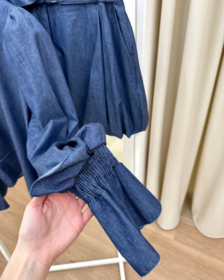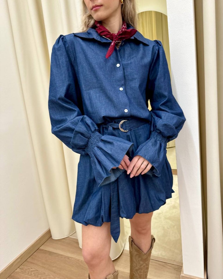 Camicia maniche a sbuffo denim blu HaveOne