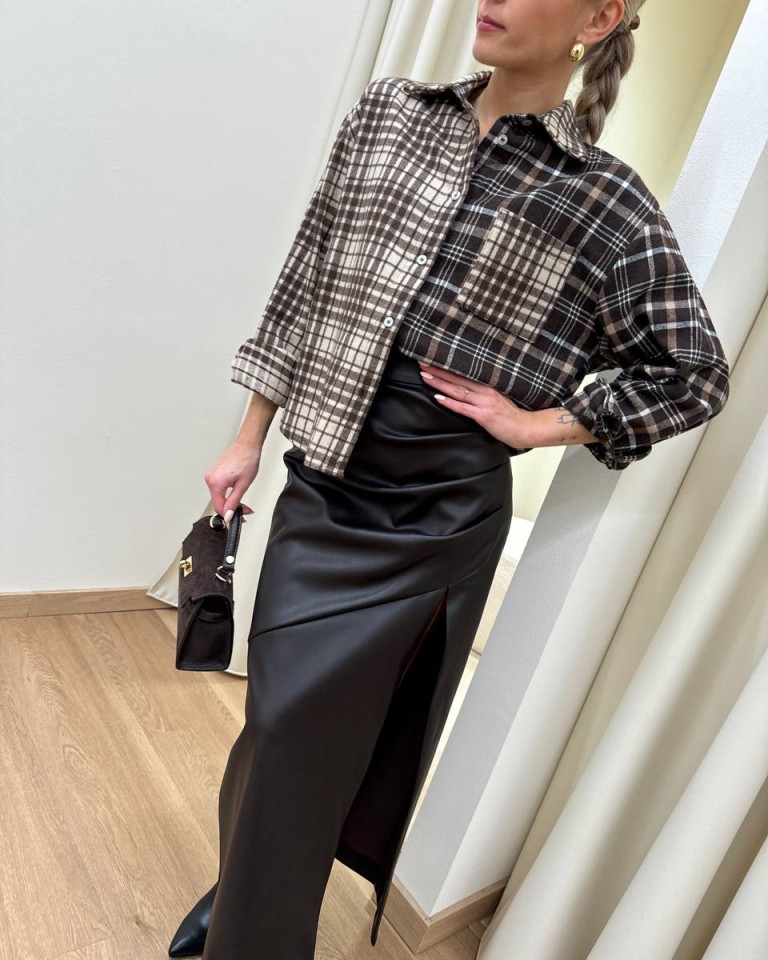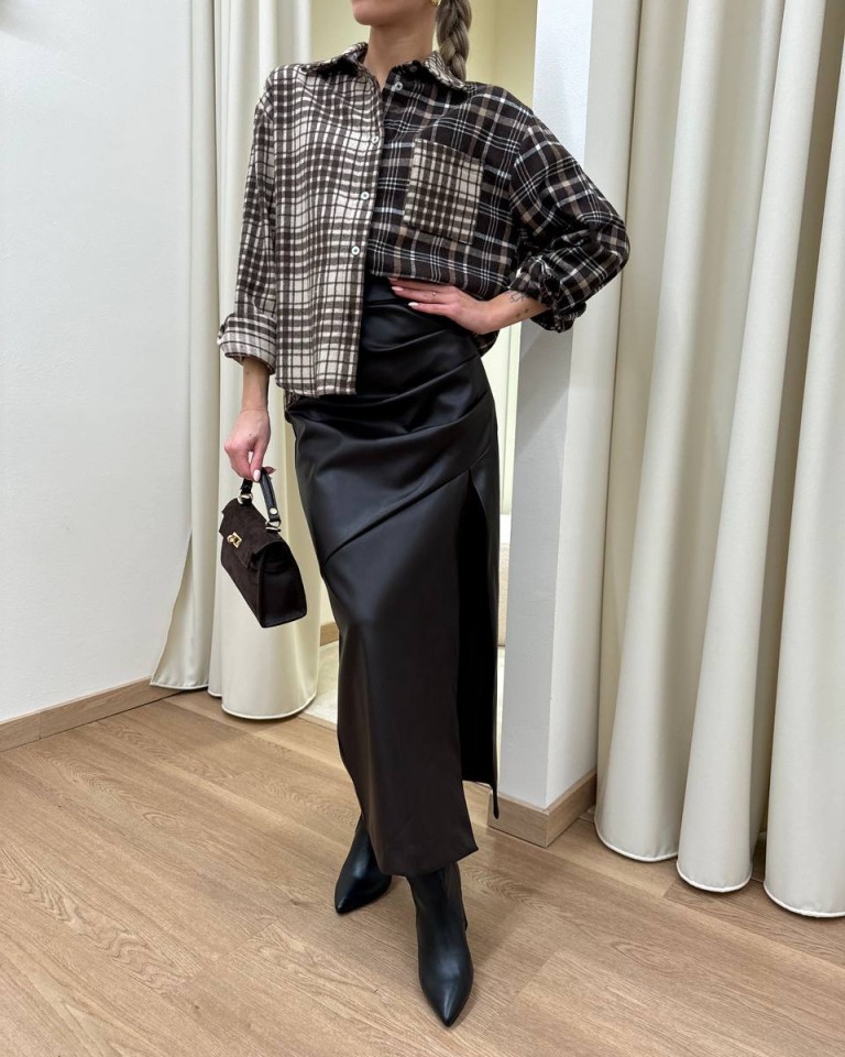 Gonna lunga ecopelle moro con spacco e drappeggio Kontatto