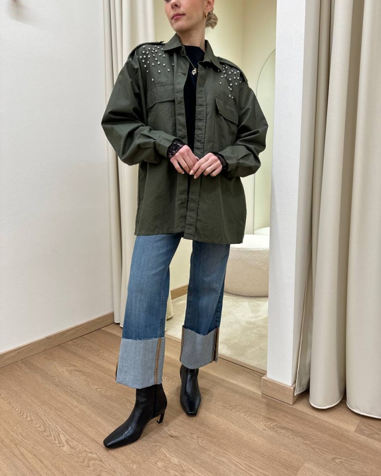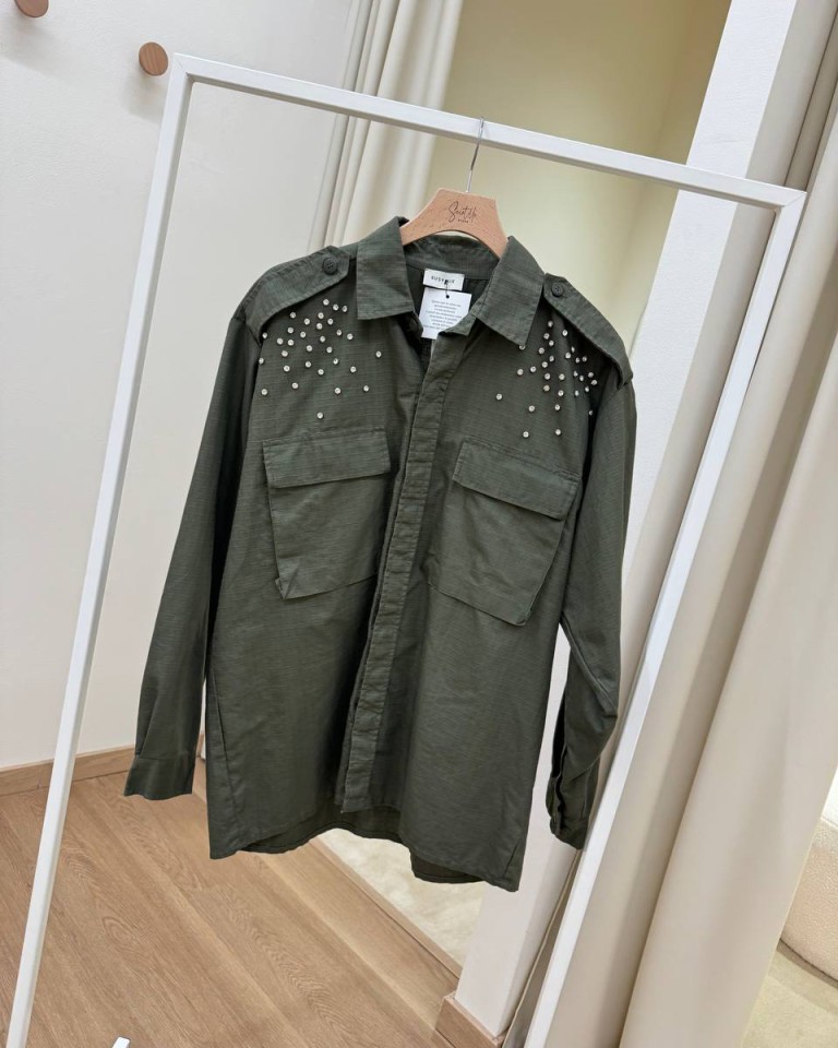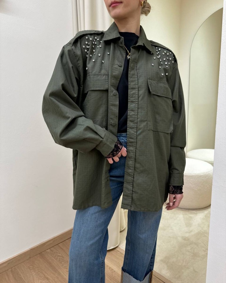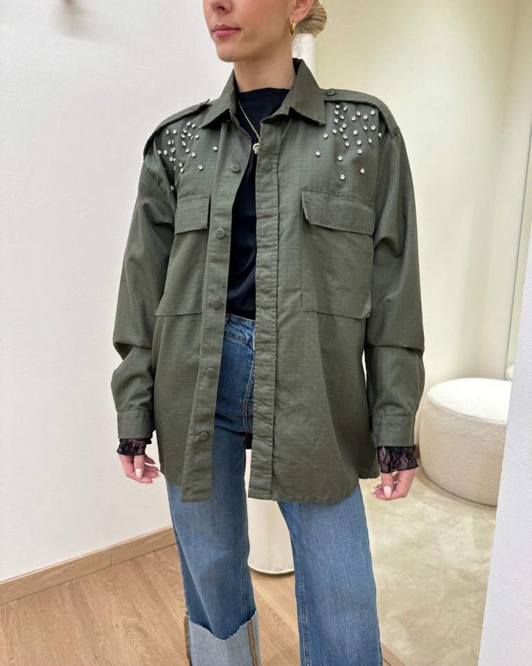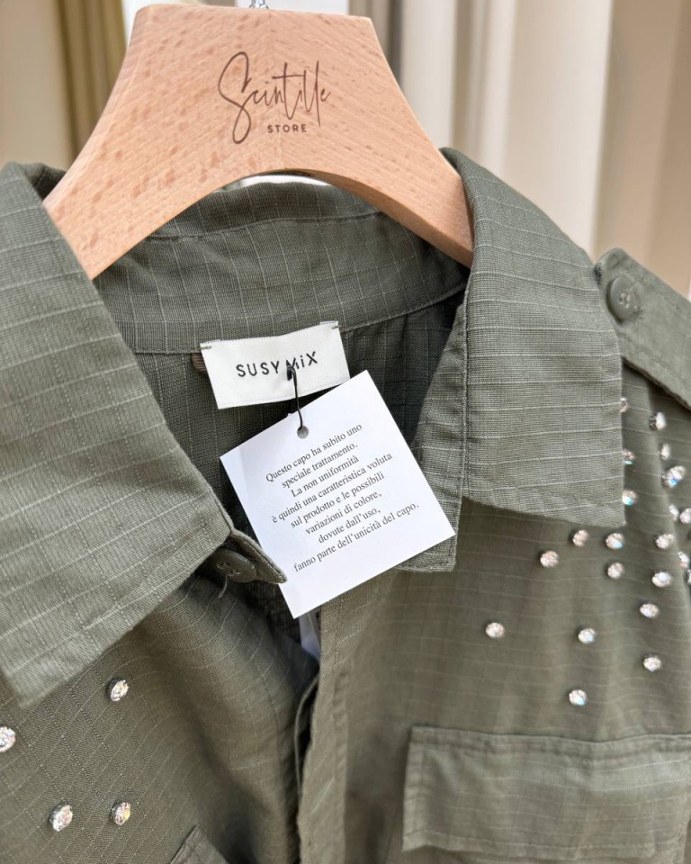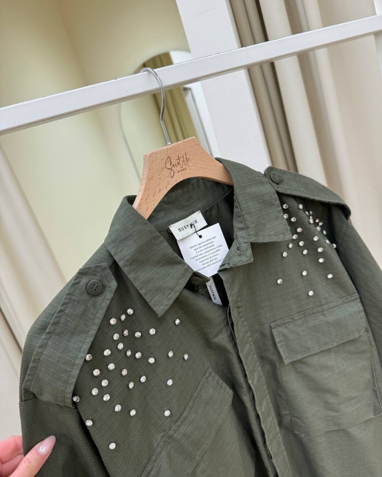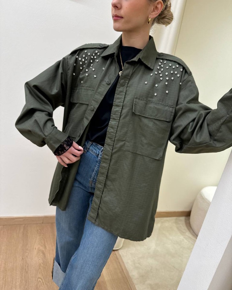 Camicia verde militare stampa e cabochon Susy Mix