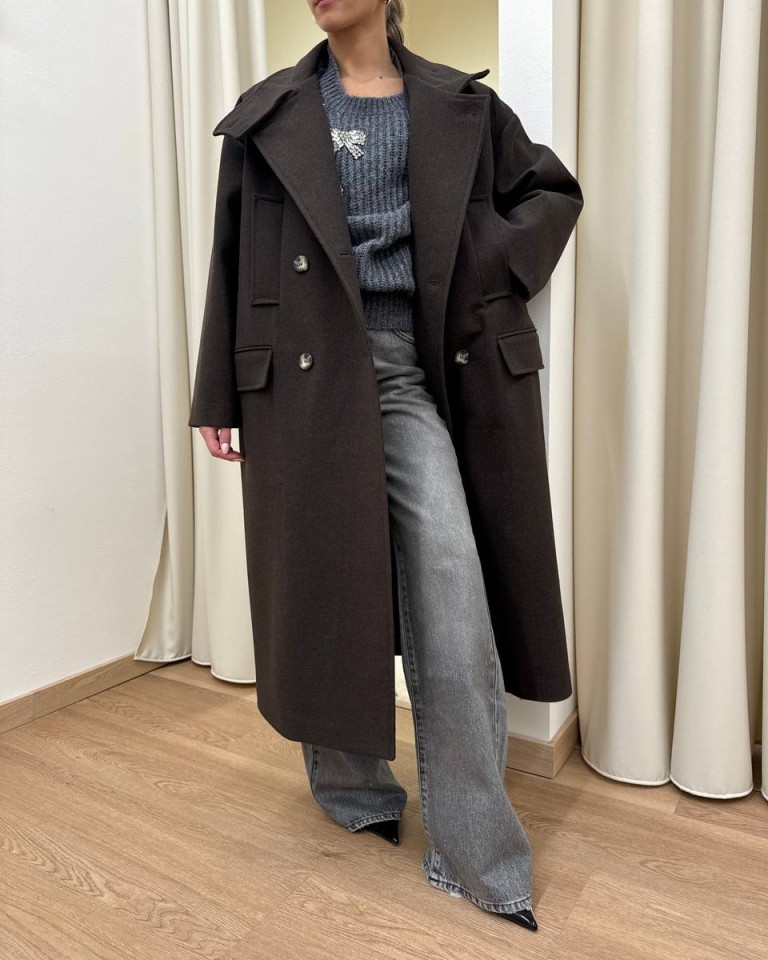 Cappotto midi cioccolato doppiopetto AnnaRita N