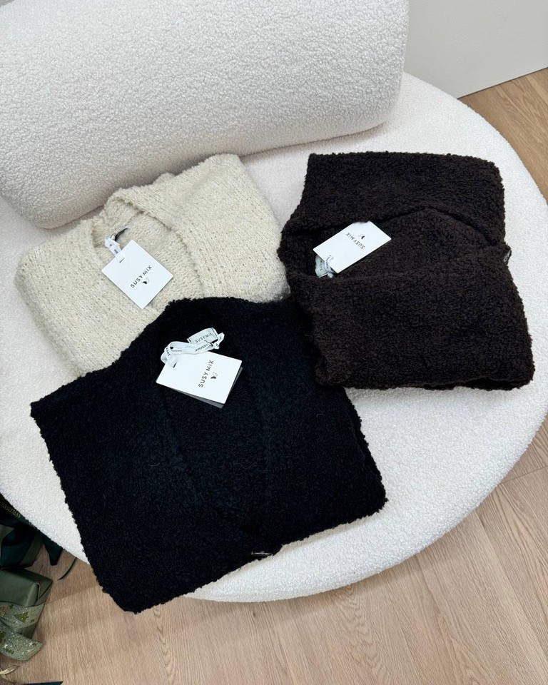 Cardigan moro in maglia bouclè con tasche Susy Mix