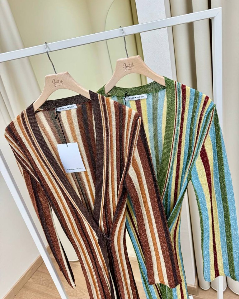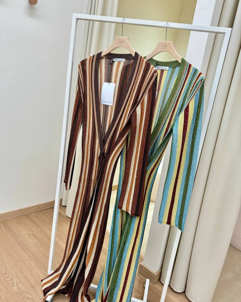 Cardigan lungo righe lurex verde The Loom Archive