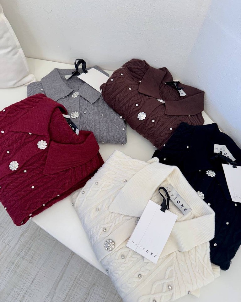 Cardigan polo burro con trecce e bottoni gioiello HaveOne