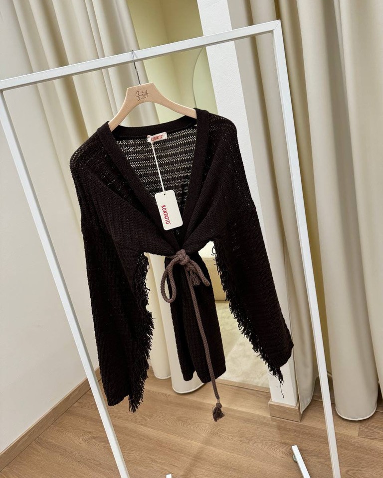 Cardigan traforato frange e corda moro Kontatto