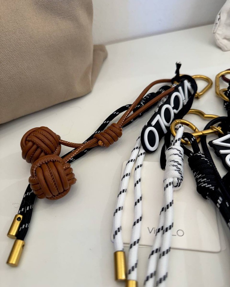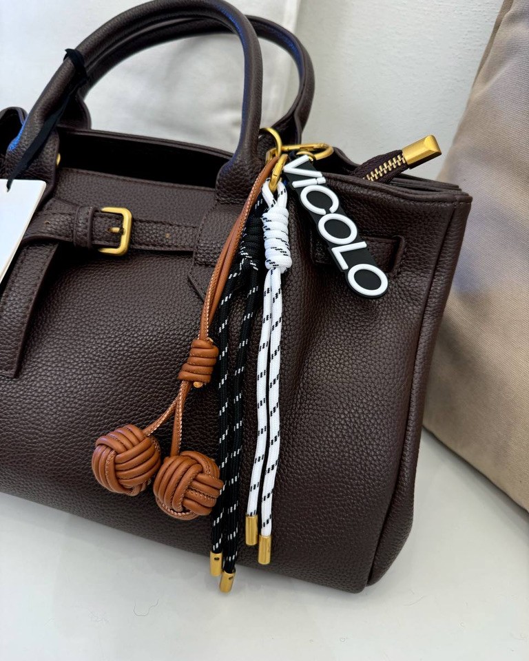 Charm cioccolato con corde e logo in gomma scritta Vicolo con gancio in metallo dorato.