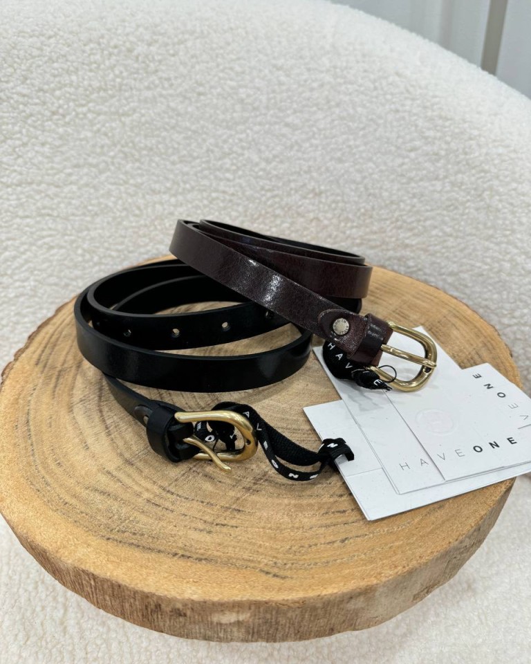 Cintura nera in vera pelle fibbia dorata HaveOne