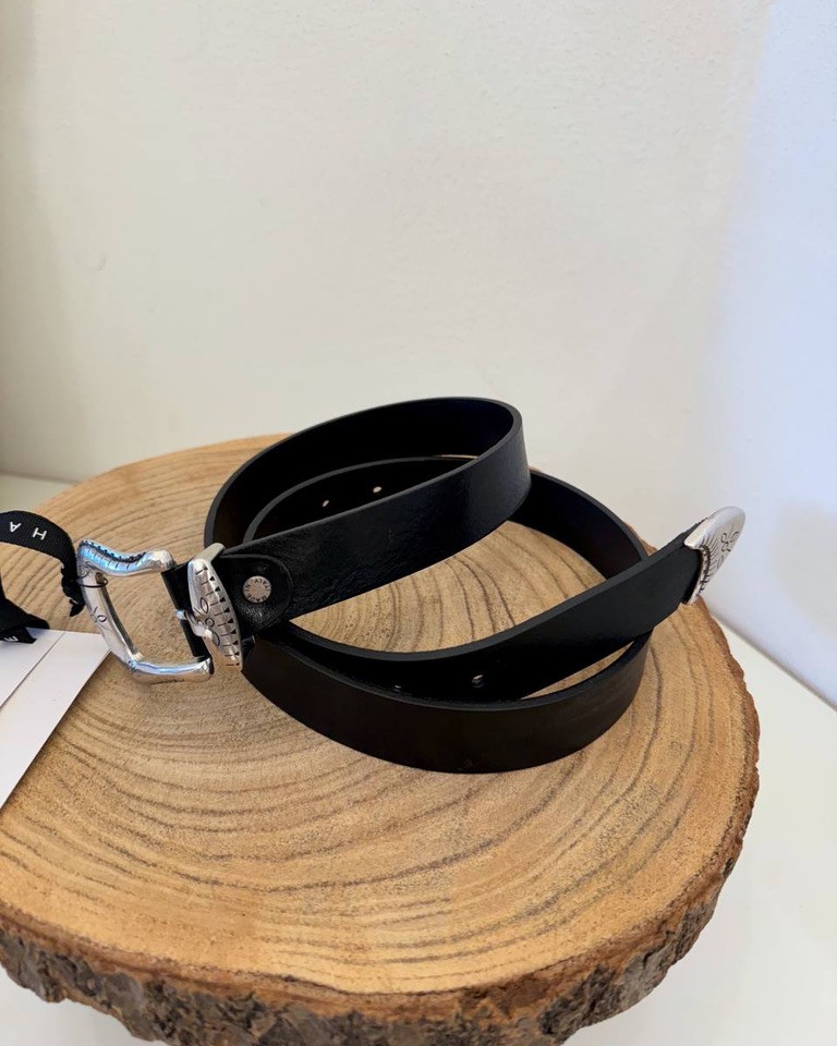 Cintura nera in vera pelle con fibbia grande squadrata. Lunghezza 110 cm fibbia compresa.