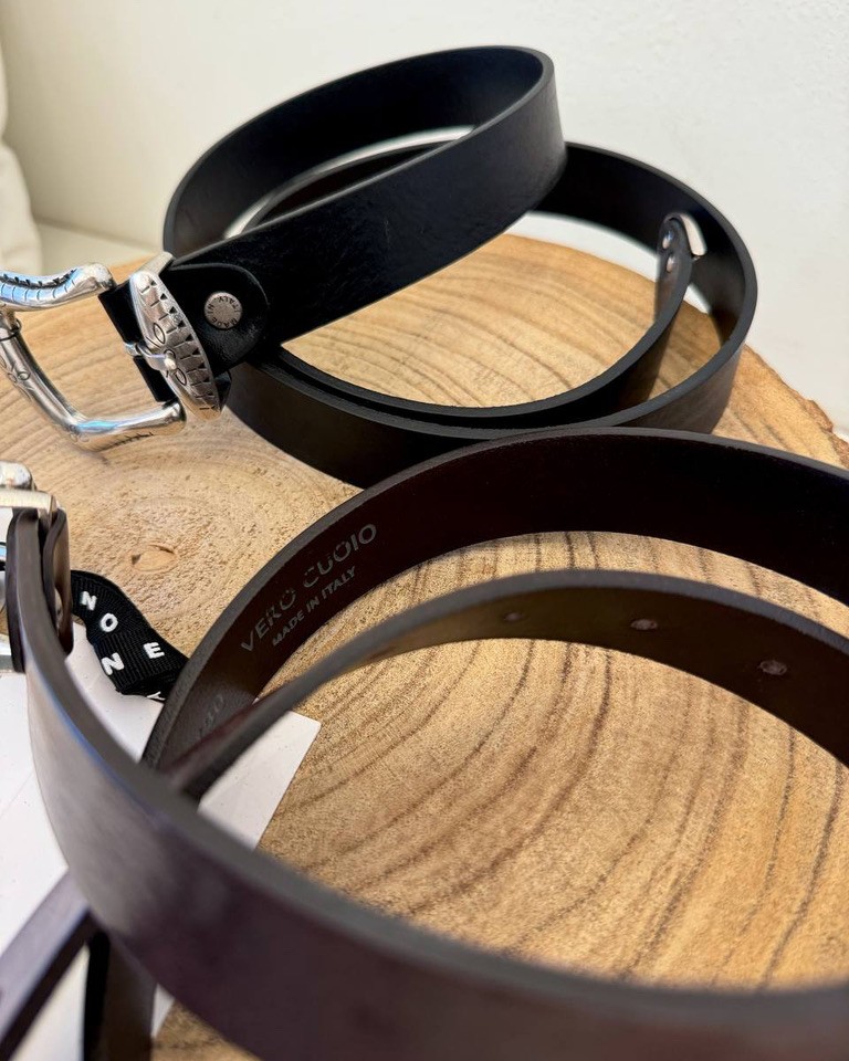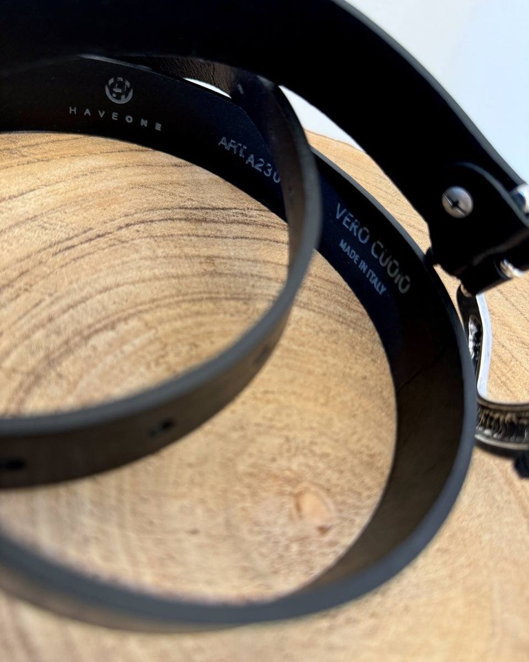 Cintura nera in vera pelle fibbia squadrata HaveOne