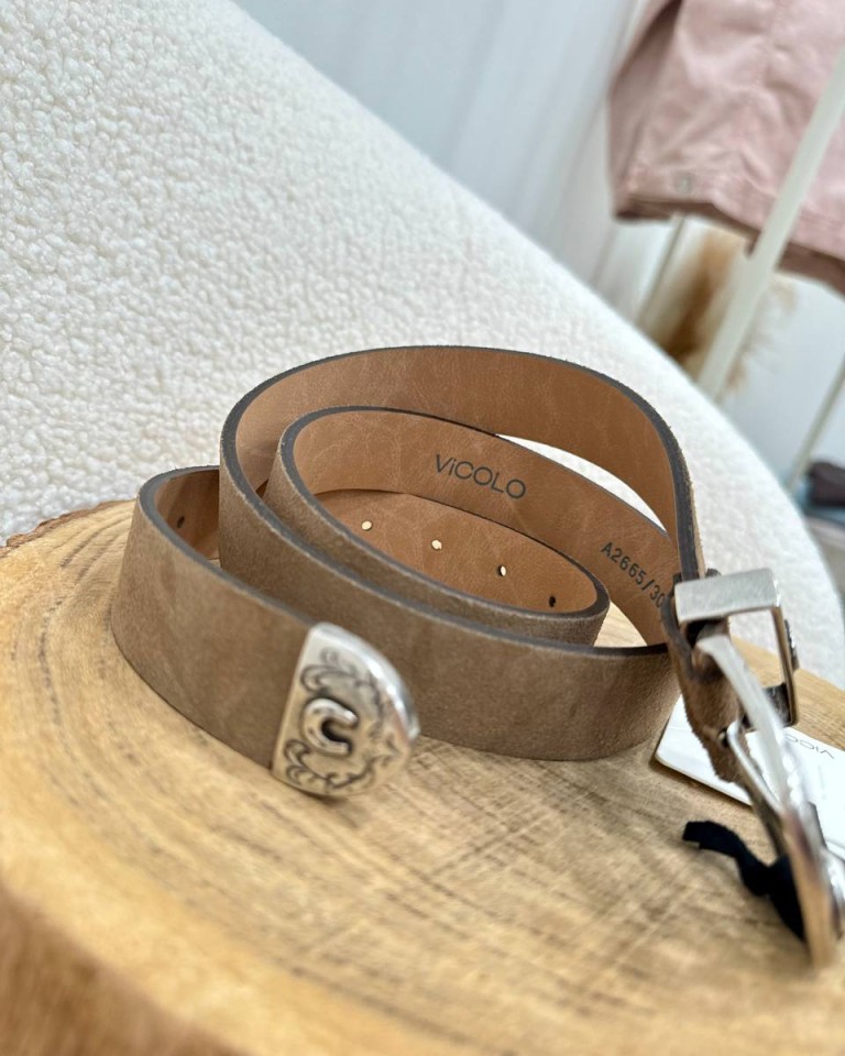 Cintura vera pelle scamosciata tortora Vicolo