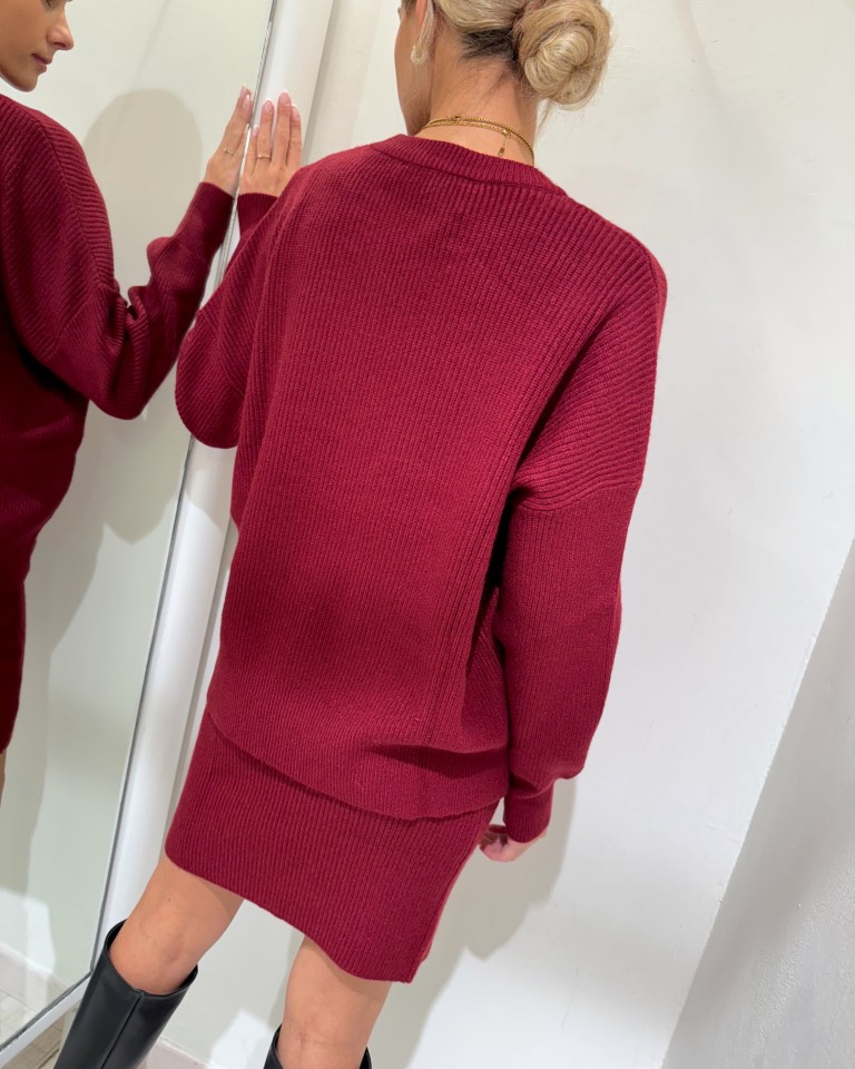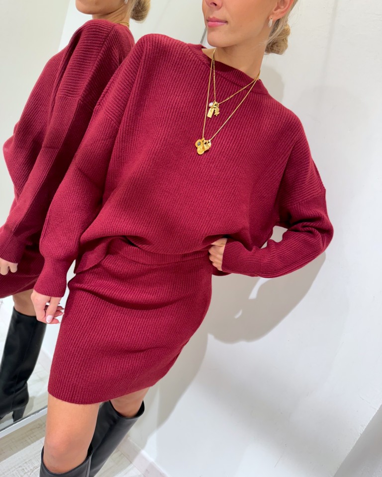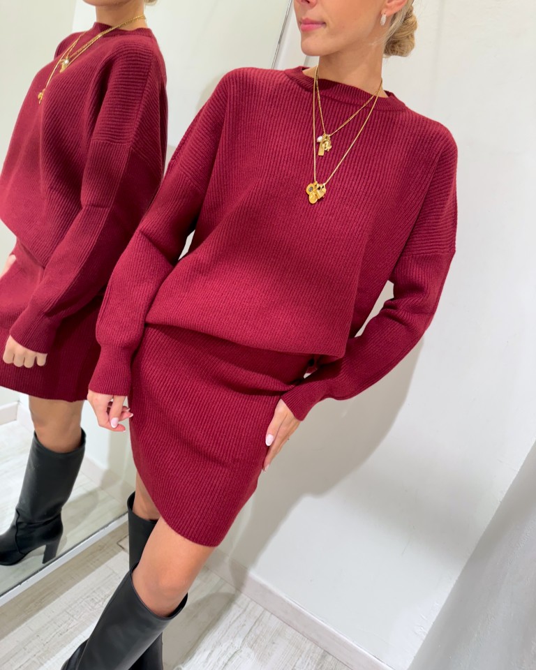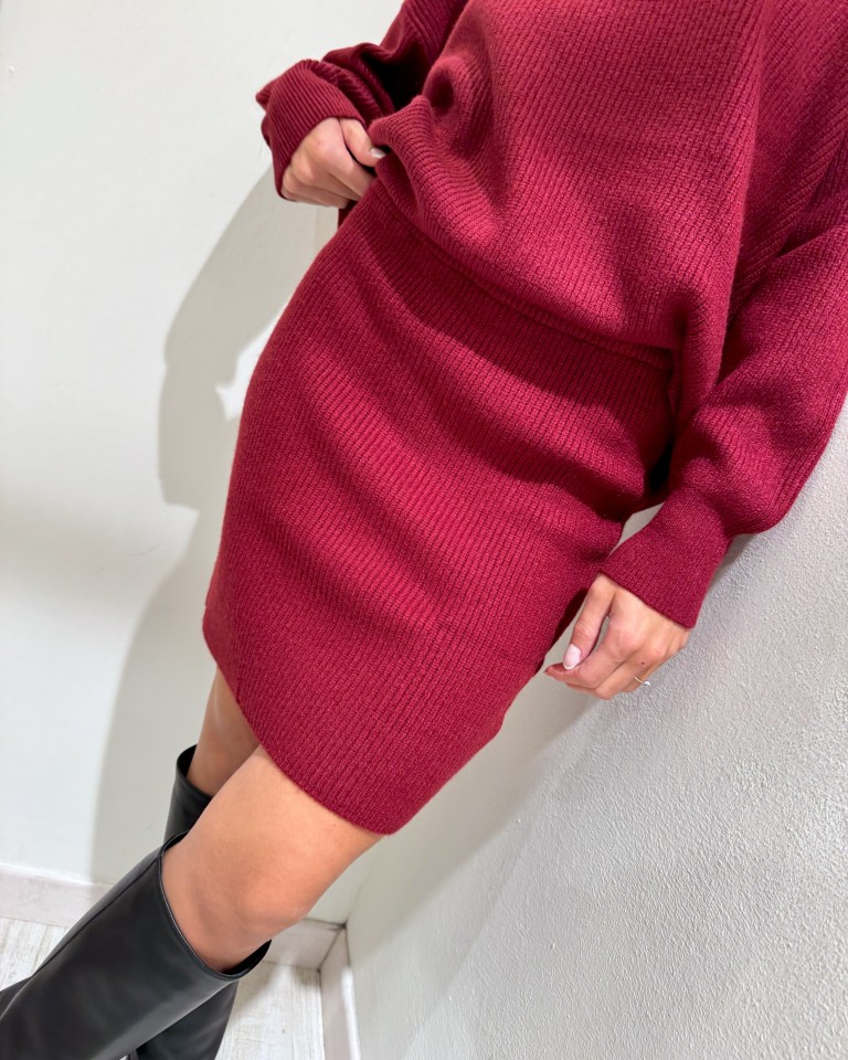 Completo in maglia bordeaux minigonna e maglia HaveOne
