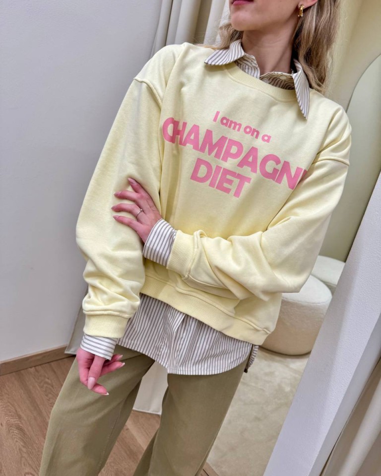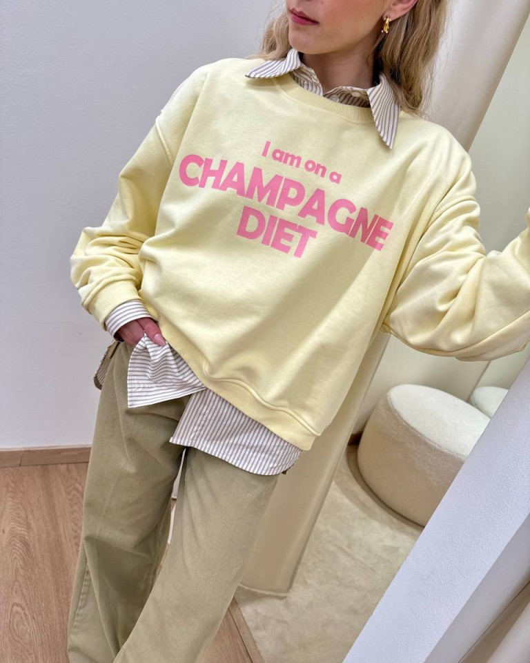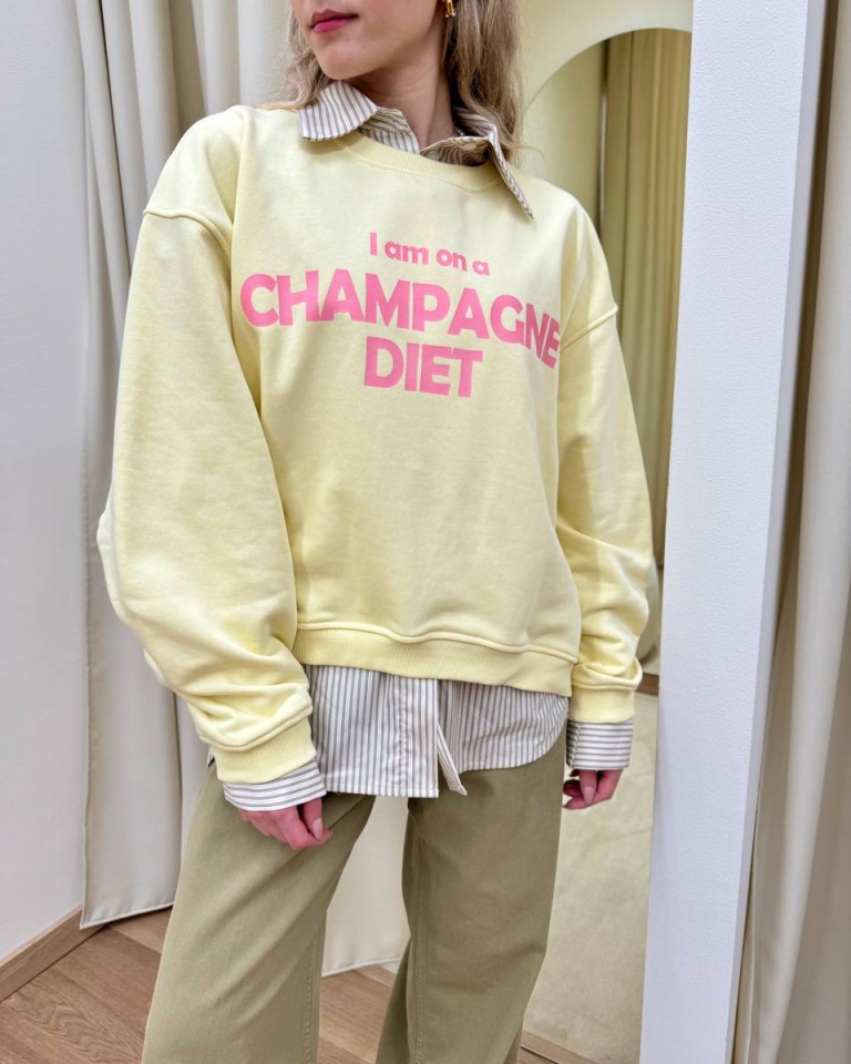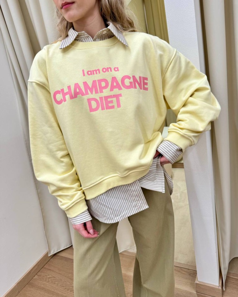 Felpa over giallino scritta “..Champagne diet” Vicolo