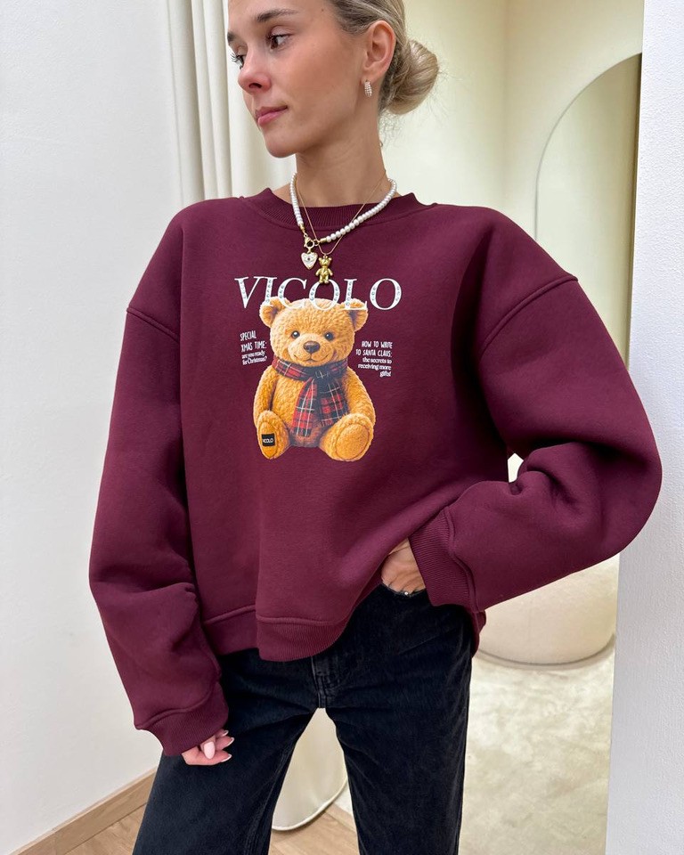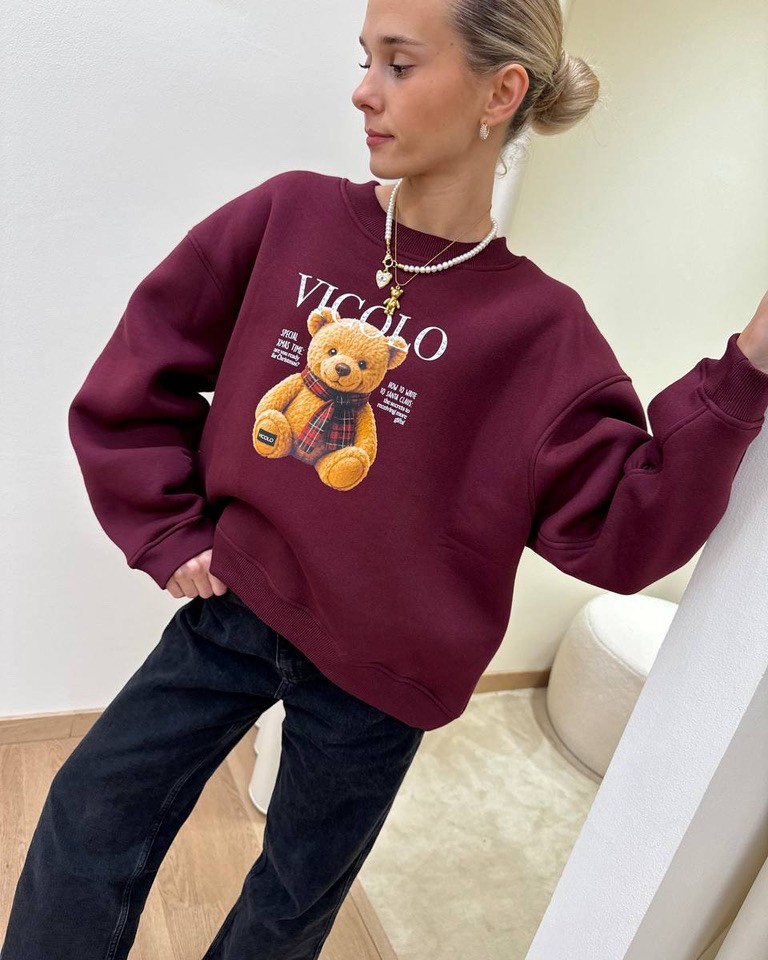 Felpa oversize bordeaux stampa orsetto sciarpa Vicolo