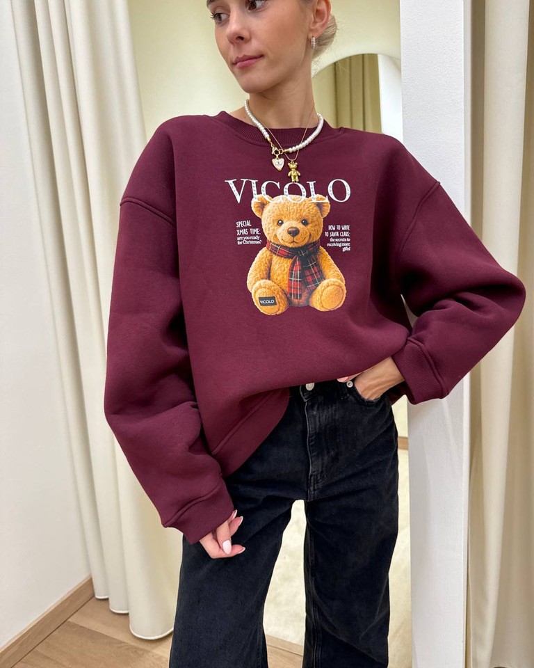 Felpa oversize bordeaux stampa orsetto Natale Vicolo