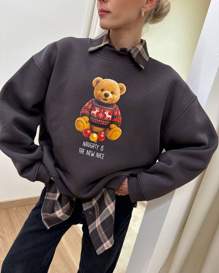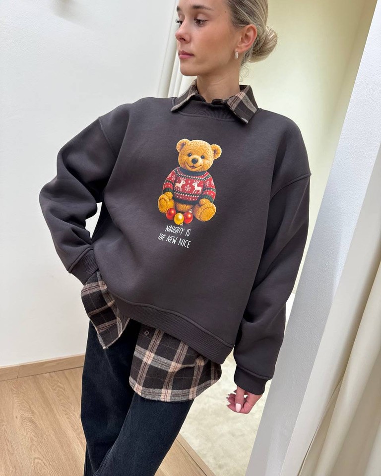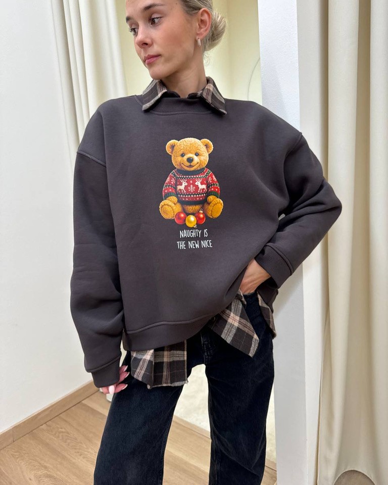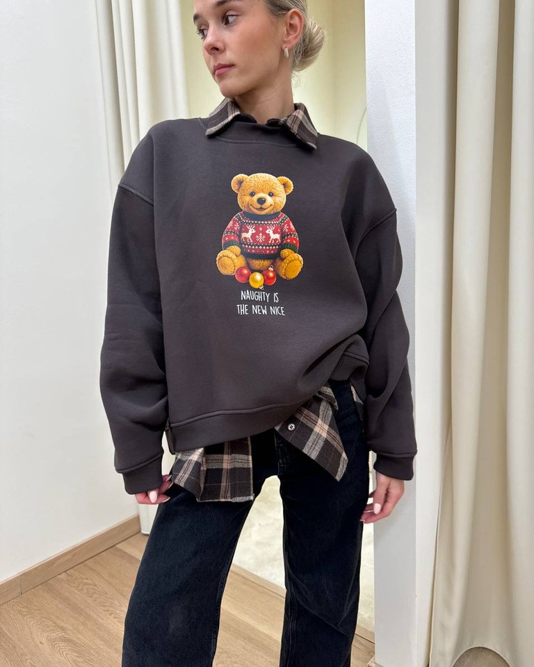 Felpa oversize moro stampa orsetto Natale Vicolo
