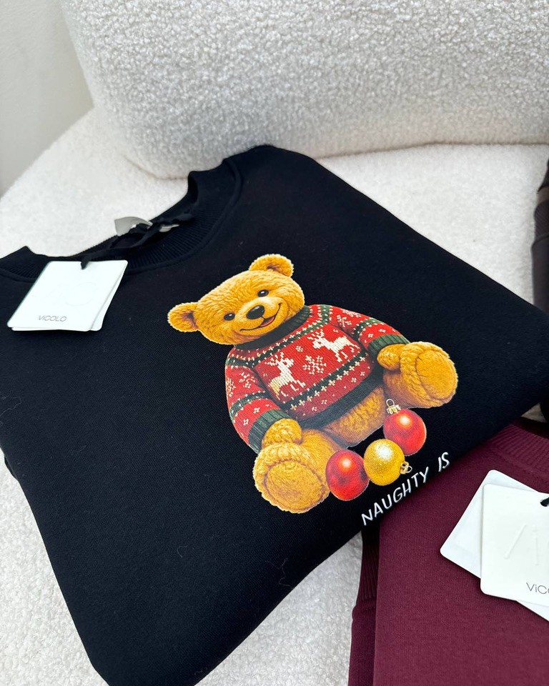 Felpa oversize moro stampa orsetto Natale Vicolo