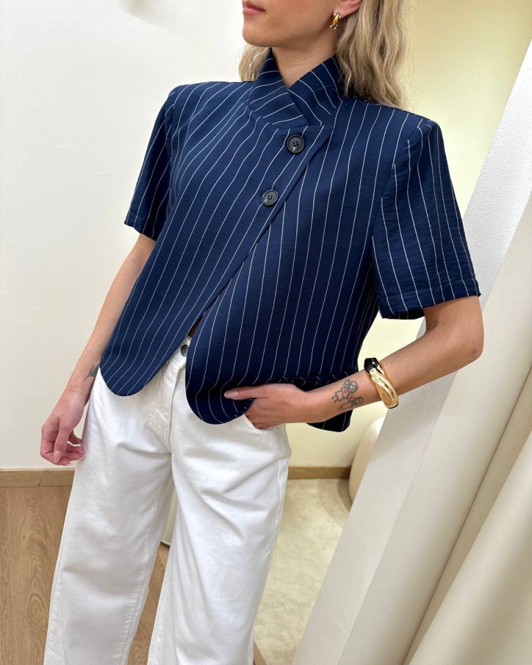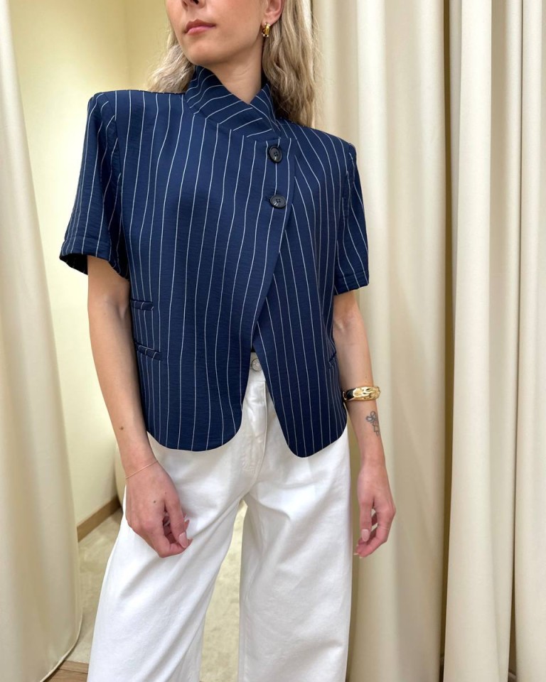 Giacca coreana manica corta gessata blu HaveOne