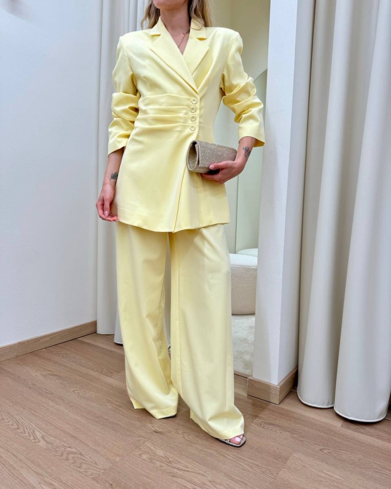 Giacca drappeggio bottoni laterali giallo pastello HaveOne