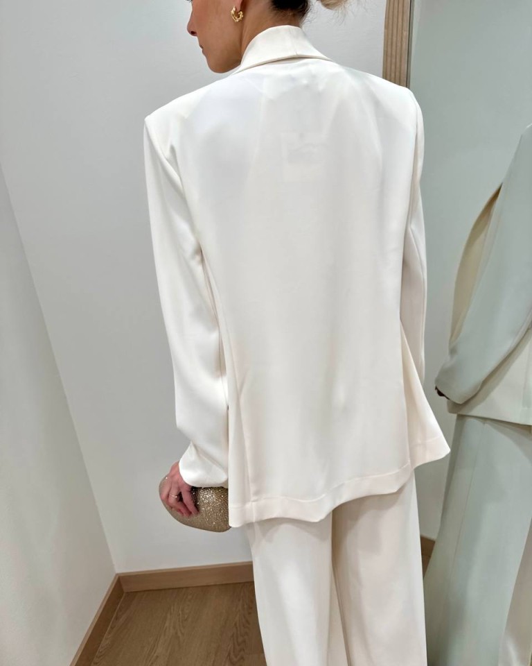 Giacca fluida color burro, modello dritto, monopetto con rever sciallato, senza bottoni, maniche lunghe, tasche con patta. Spalline imbottite, sfoderata. Vestibilità regolare.