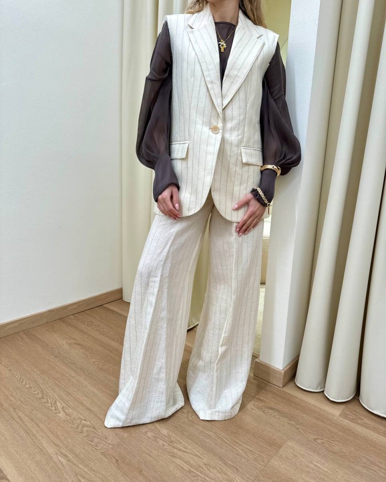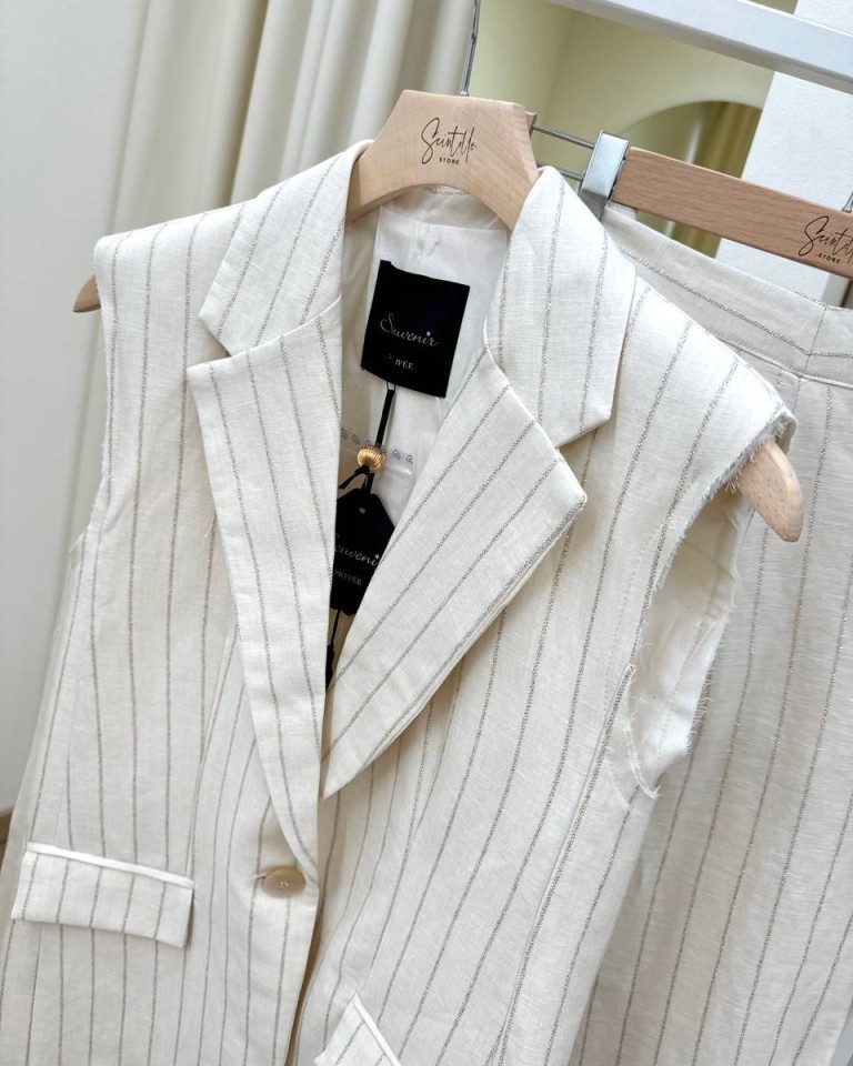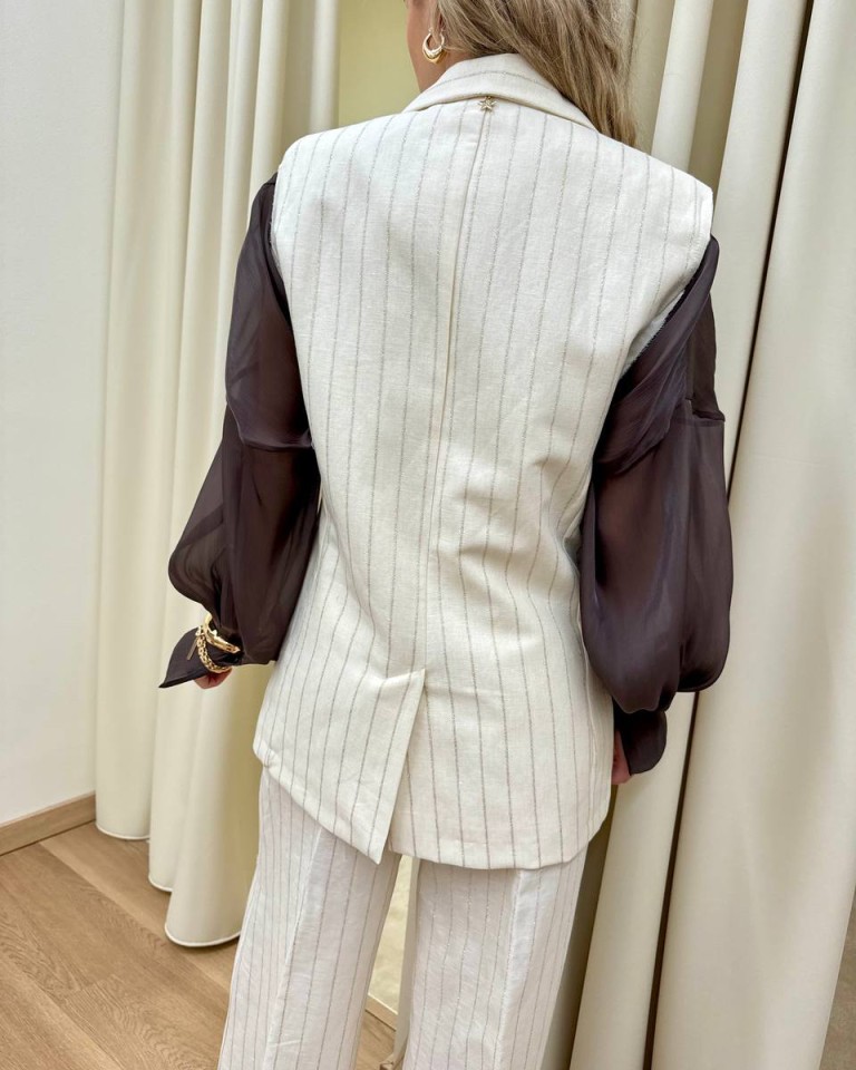 Giacca smanicata burro righe lurex Souvenir