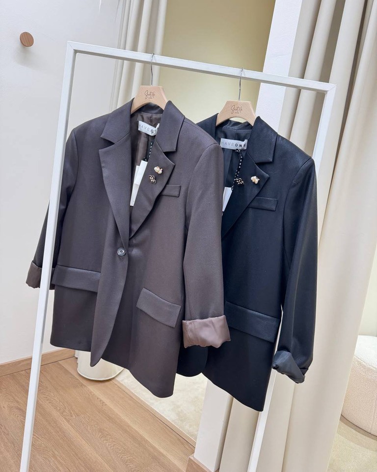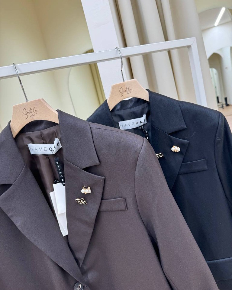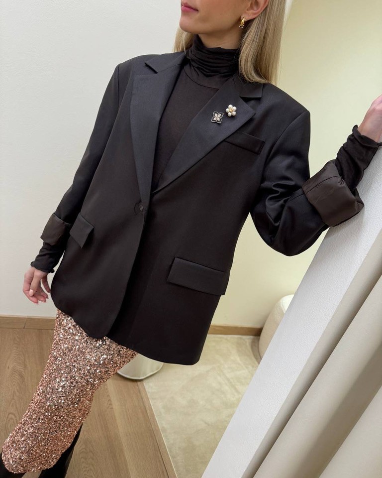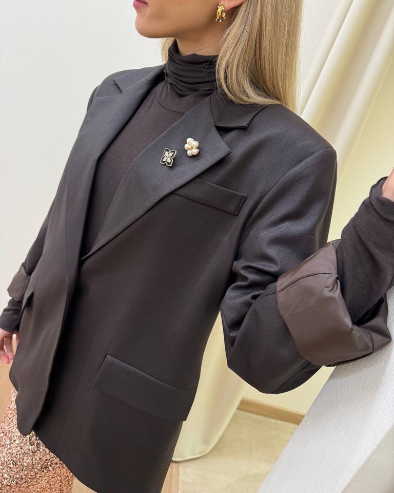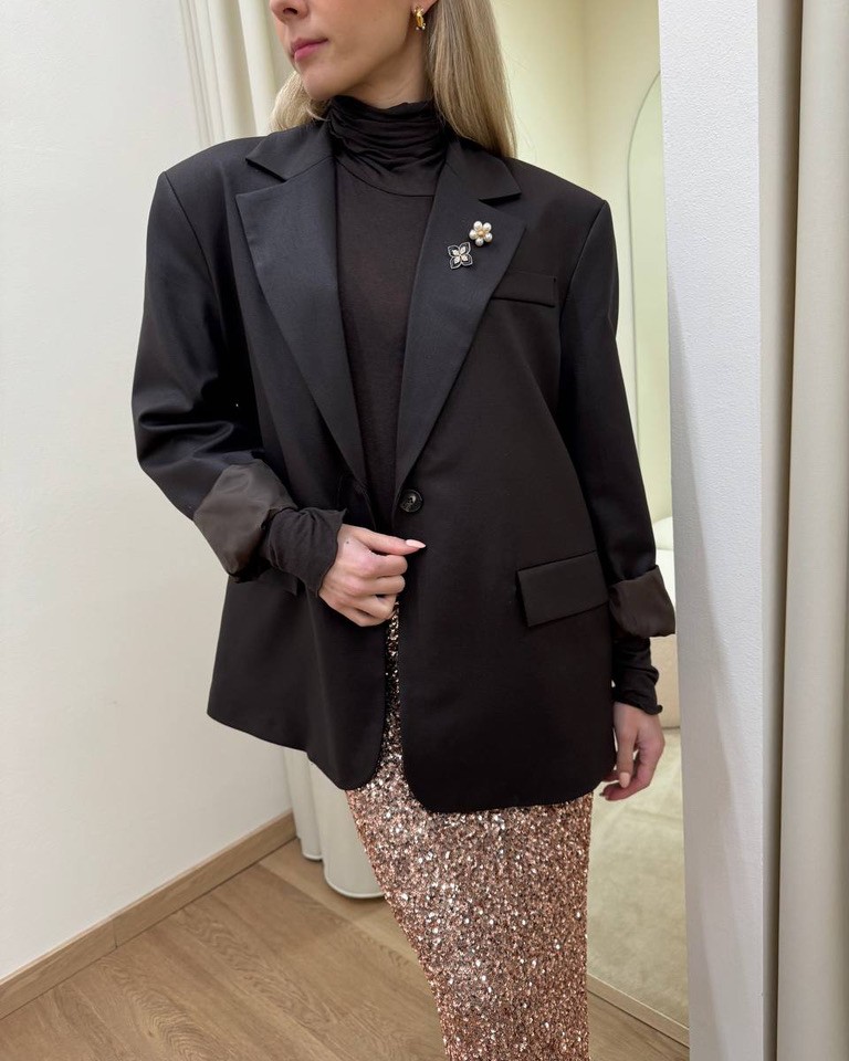 Giacca tessuto semilucido moro rever classico e spille HaveOne