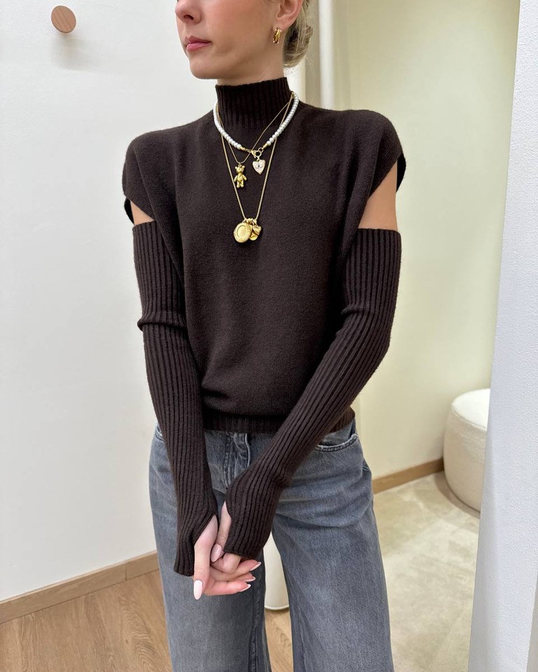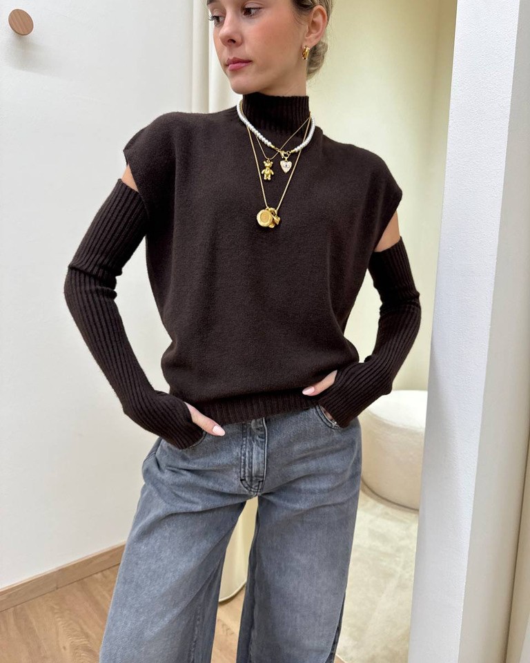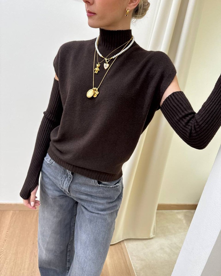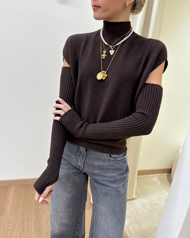 Gilet collo alto con manicotti moro Susy Mix