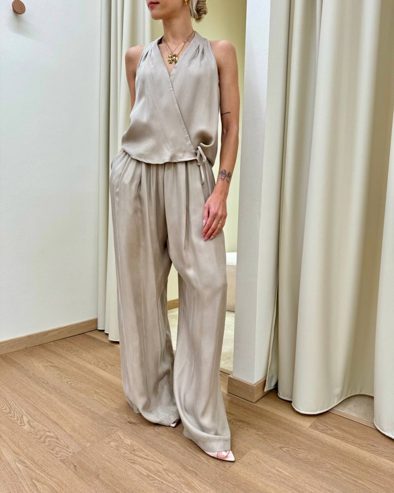 Pantalone fluido vita arricciata sabbia Souvenir