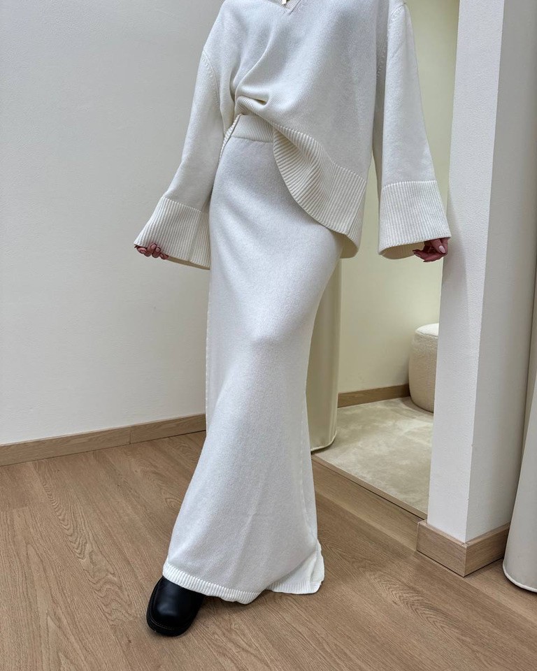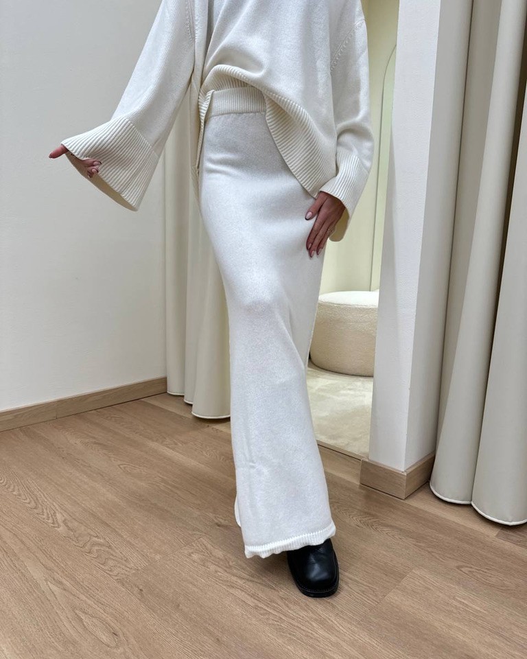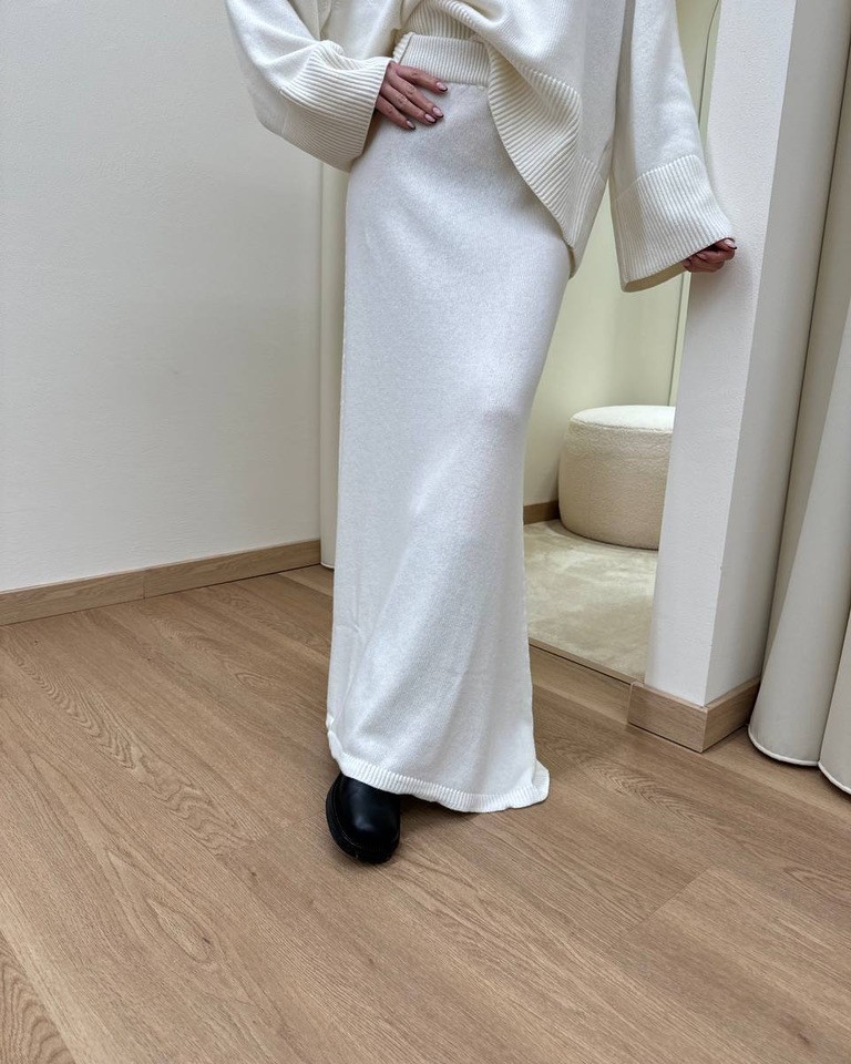 Gonna in maglia burro con viscosa, lana e cachemire. Modello lungo, svasato con elastico in vita e costine sul fondo. Vestibilità regolare.