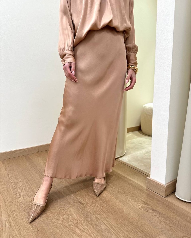 Gonna midi raso di viscosa rosa cipria HaveOne