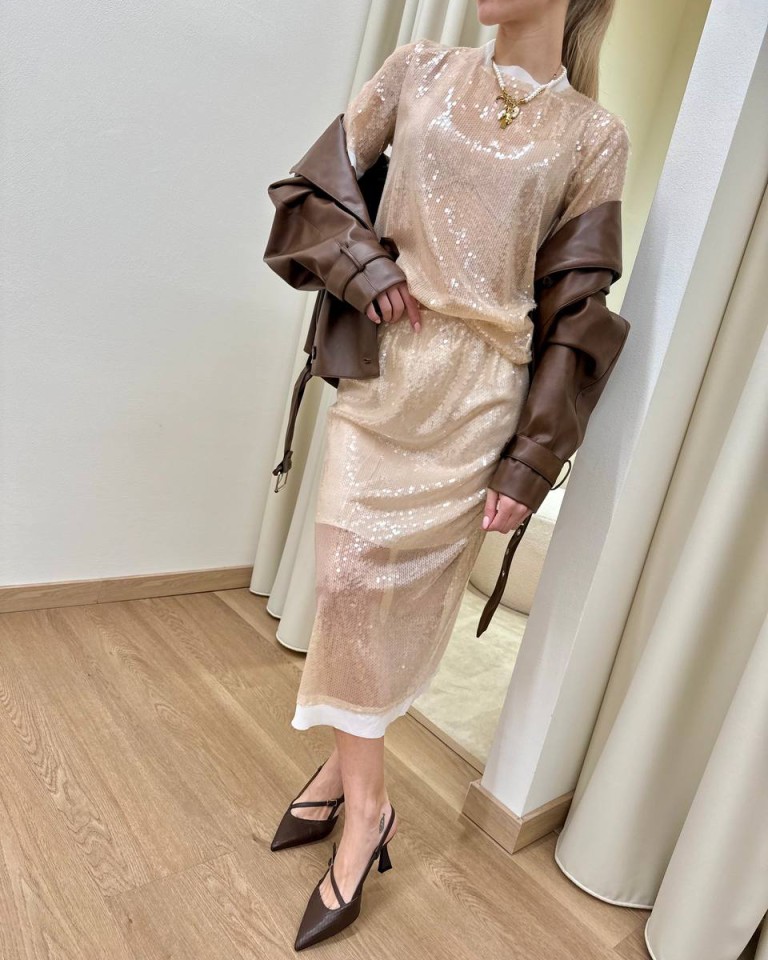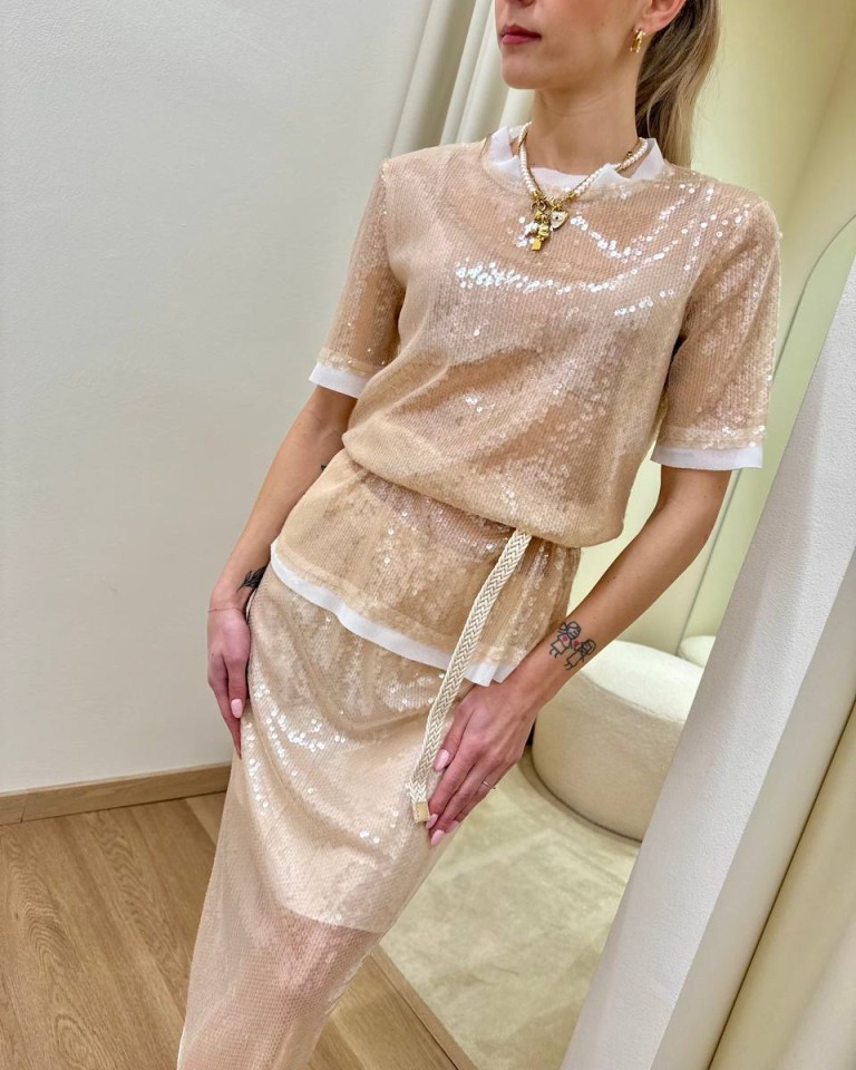 Gonna paillettes beige HaveOne