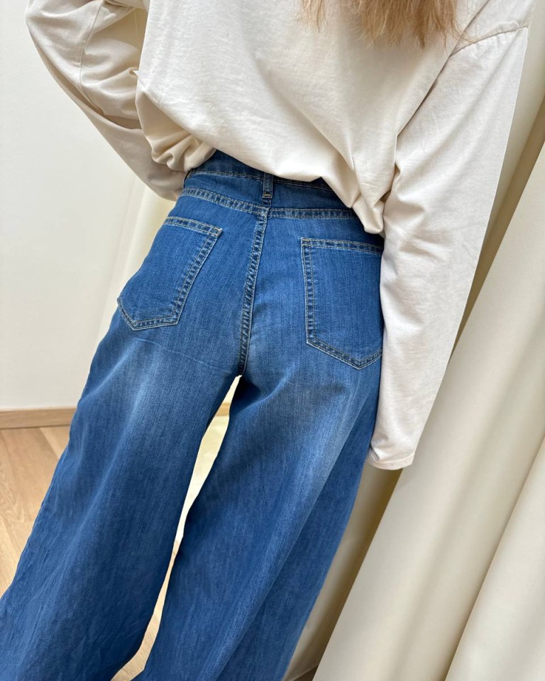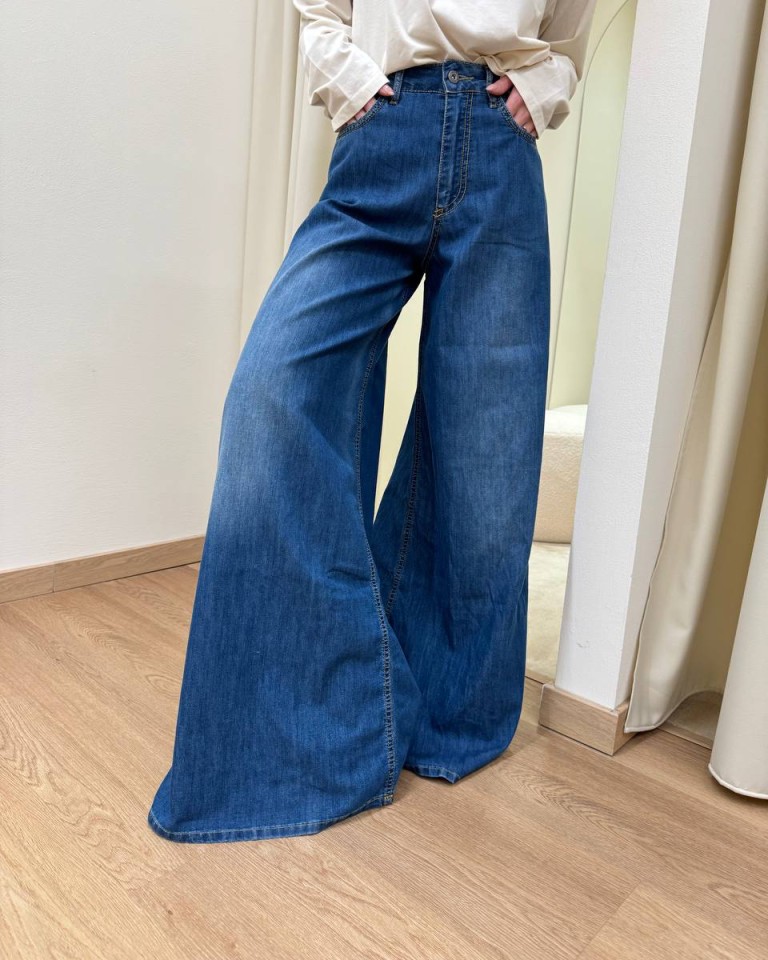Jeans “Gerbera” palazzo blu sfumato Kontatto