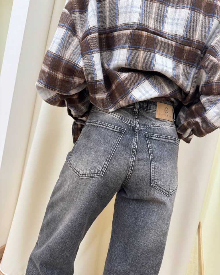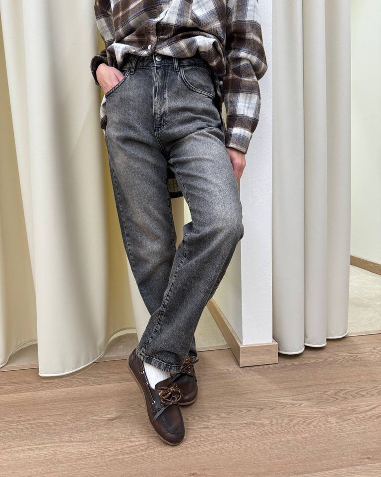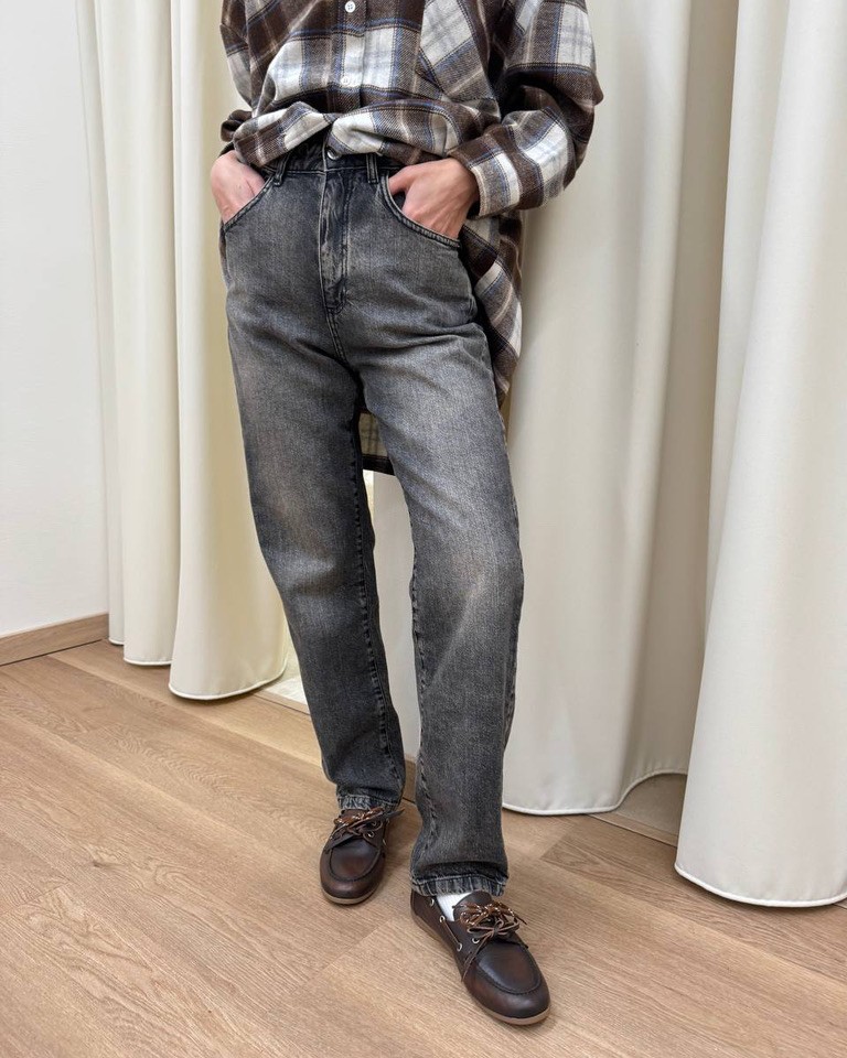 Jeans LOUIS dal lavaggio nero slavato. Vestibilità dritta e morbida che va a stringere leggermente alla caviglia.