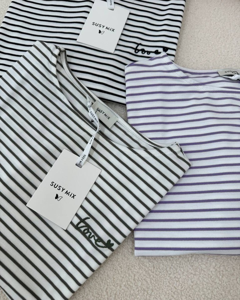 Shop Online Maglia a righe bianca e verde ricamo Susy Mix