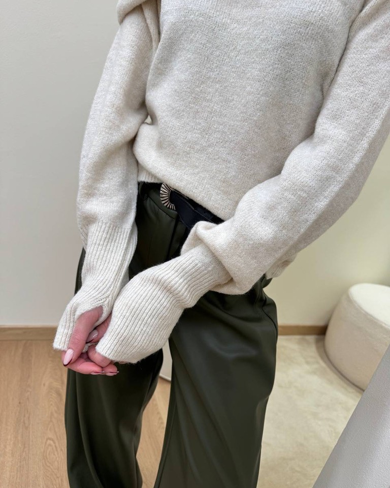 Abito in maglia smanicato collo alto spalline e manicotti beige melange Kontatto