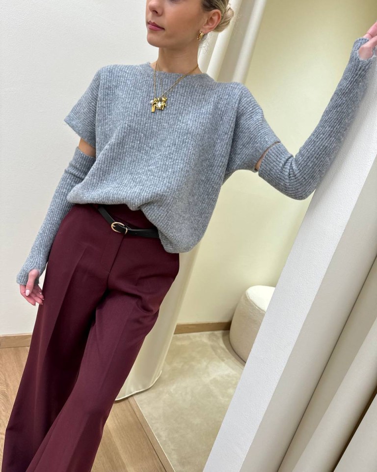 Maglia grigia girocollo con lurex e manicotti Vicolo