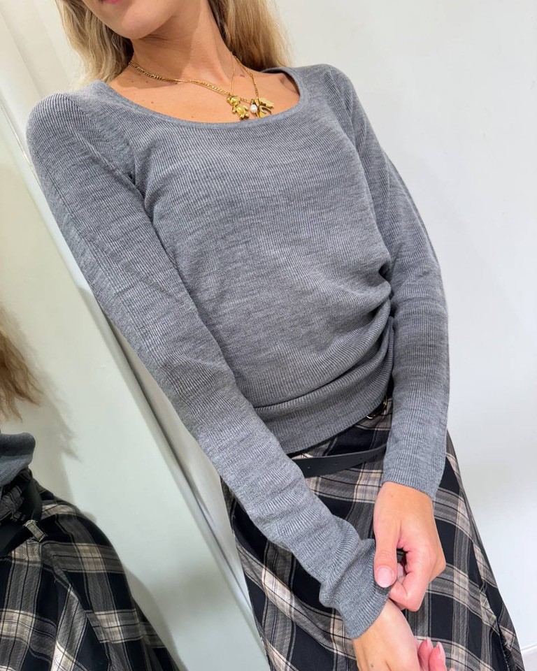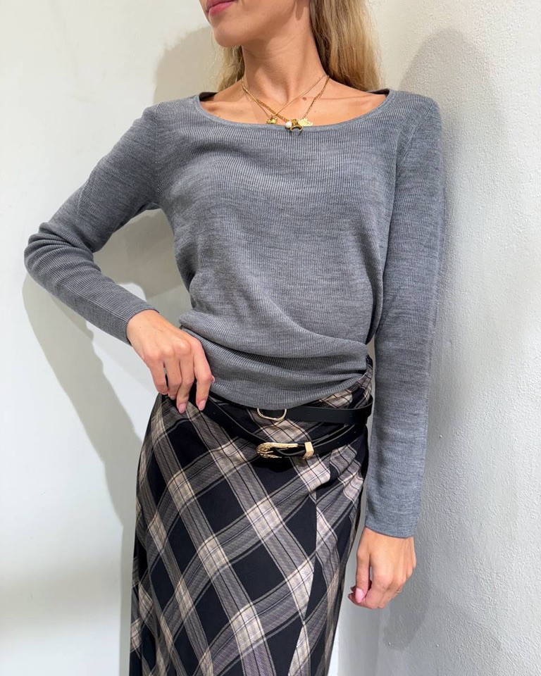 Maglia grigia costine scollo madonna HaveOne