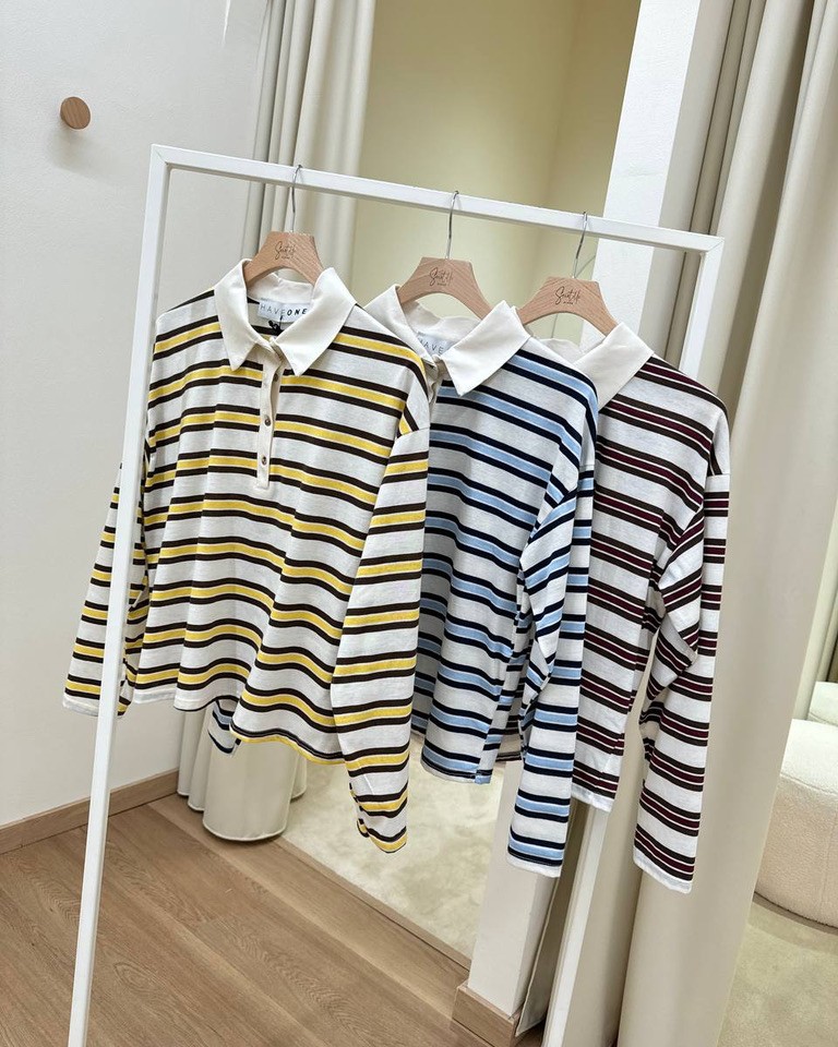 Maglia polo righe panna, moro e giallo HaveOne