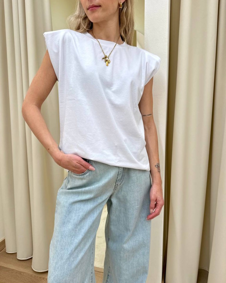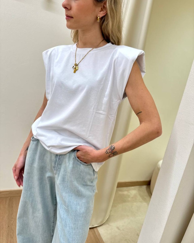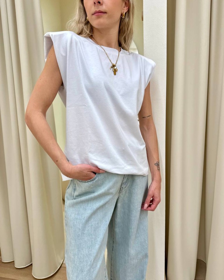 Maglia smanicata spalline imbottite bianca HaveOne