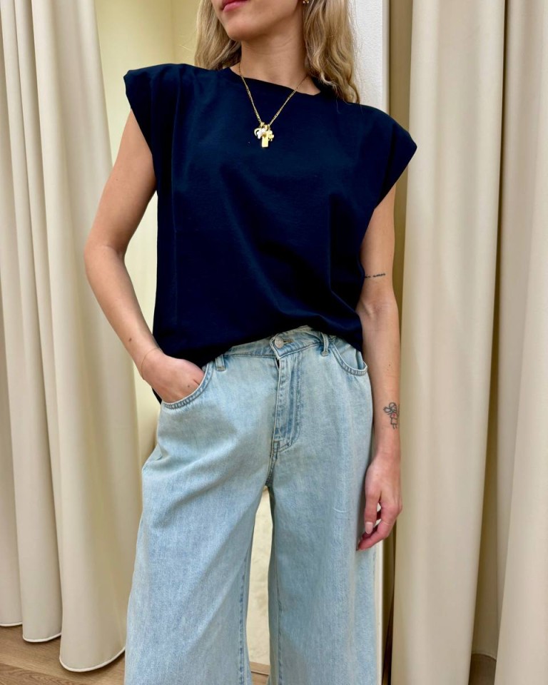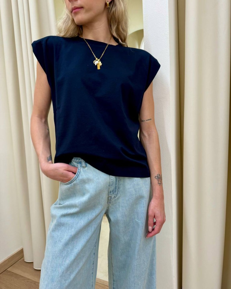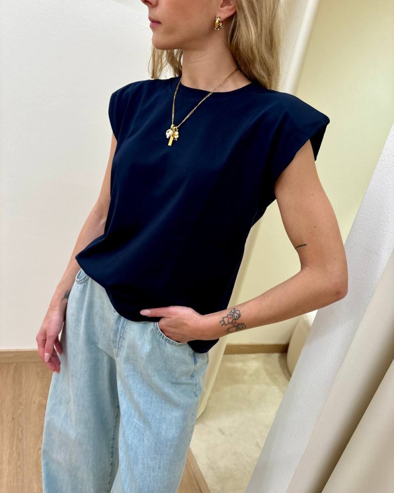 Maglia smanicata spalline imbottite blu HaveOne
