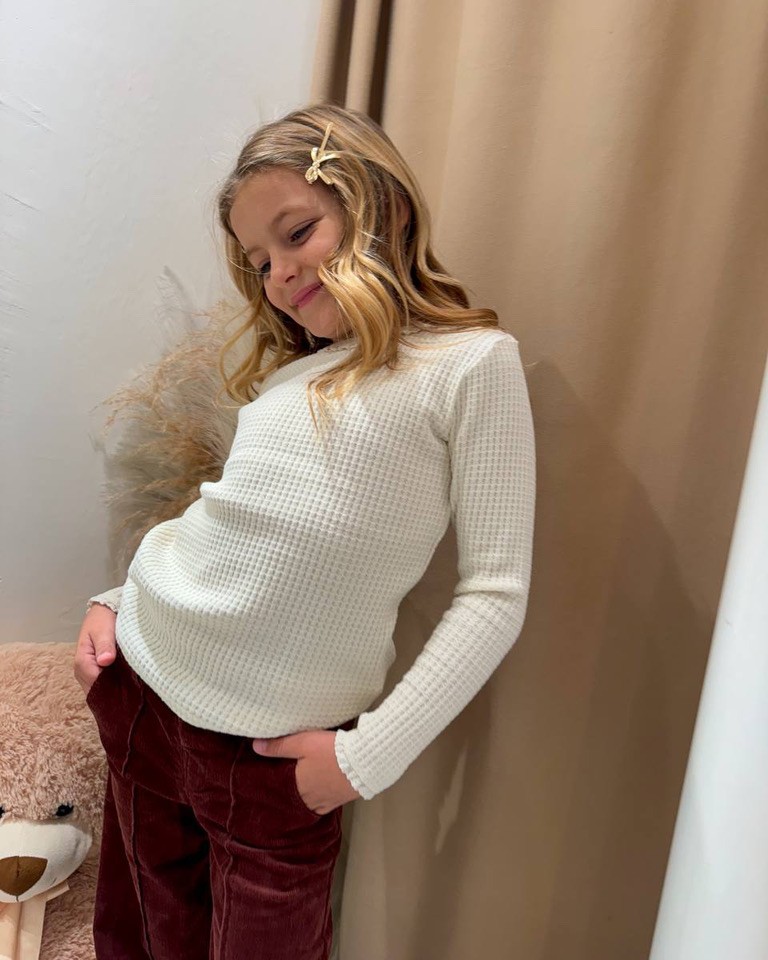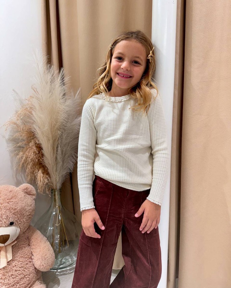 Maglietta burro nido d’ape con rouches colletto Lil’ Atelier