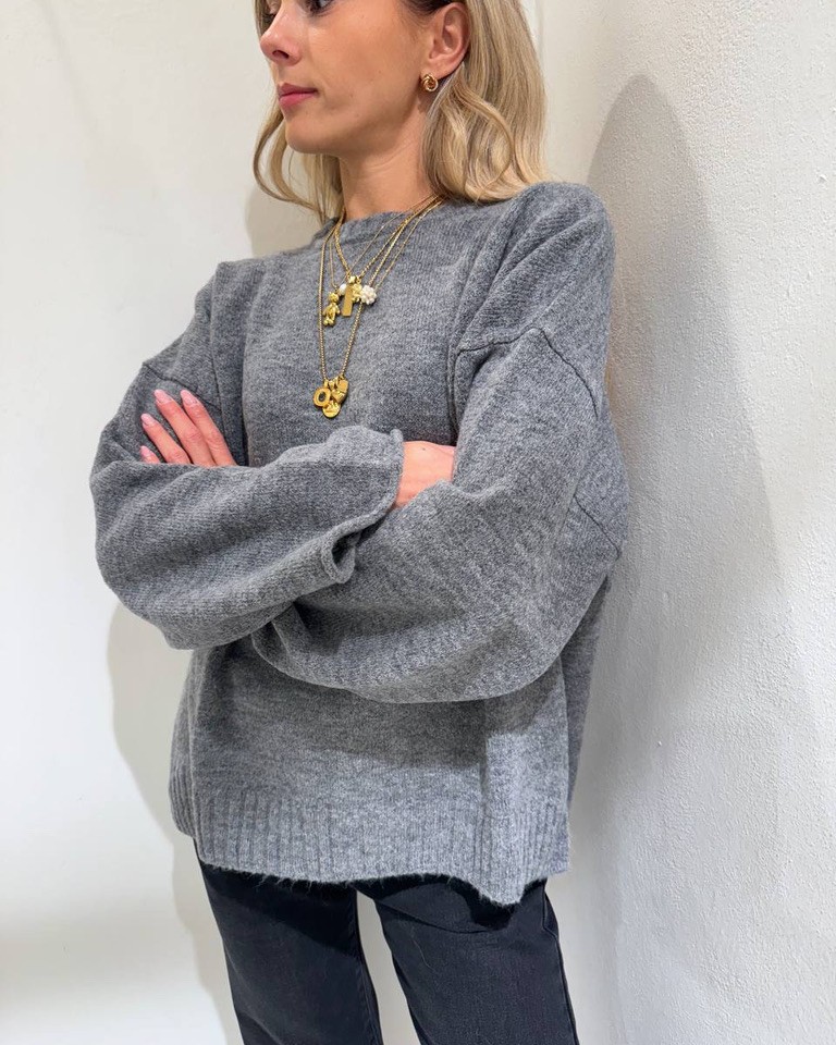 Maglione ampio girocollo grigio Kontatto